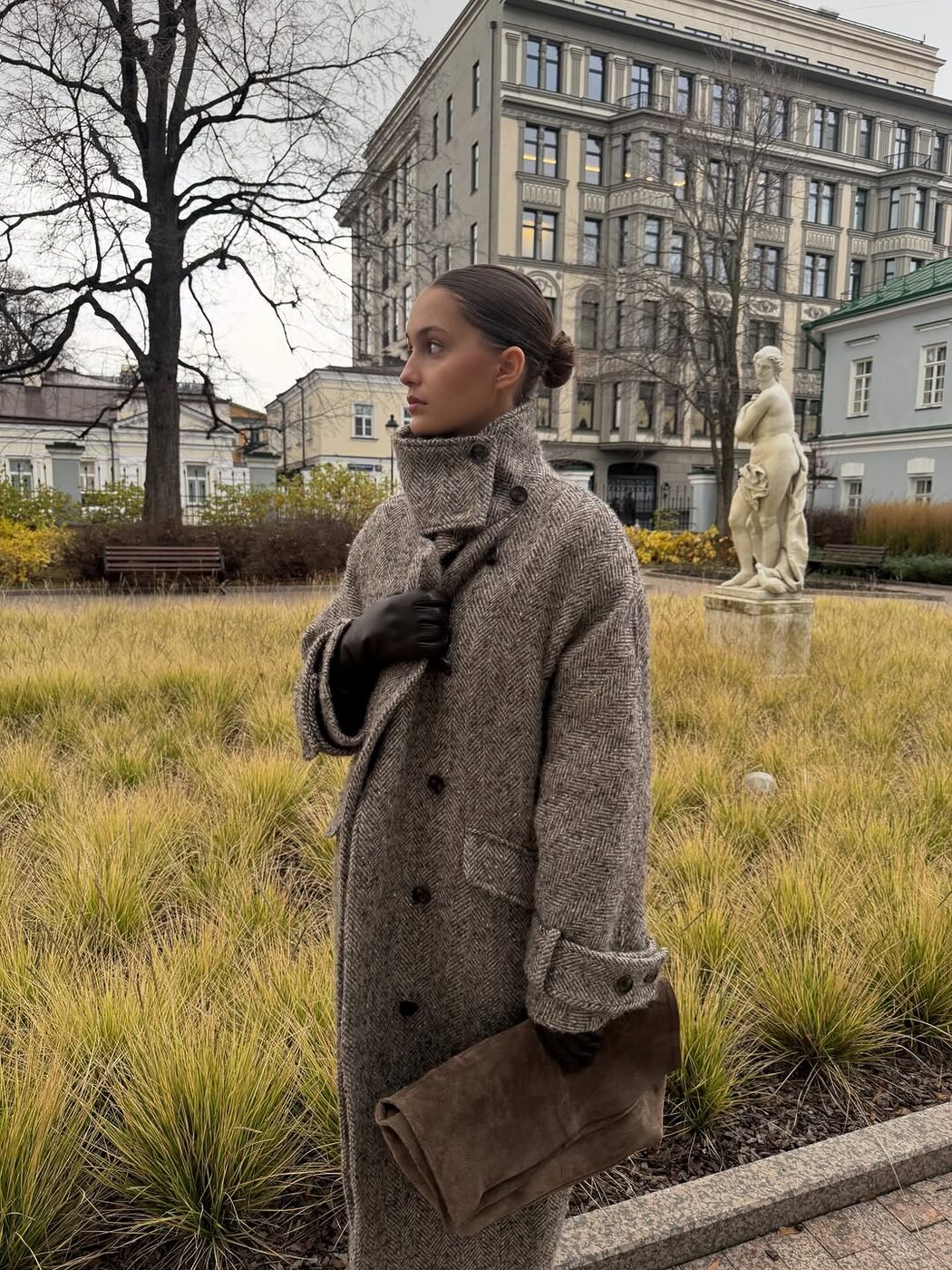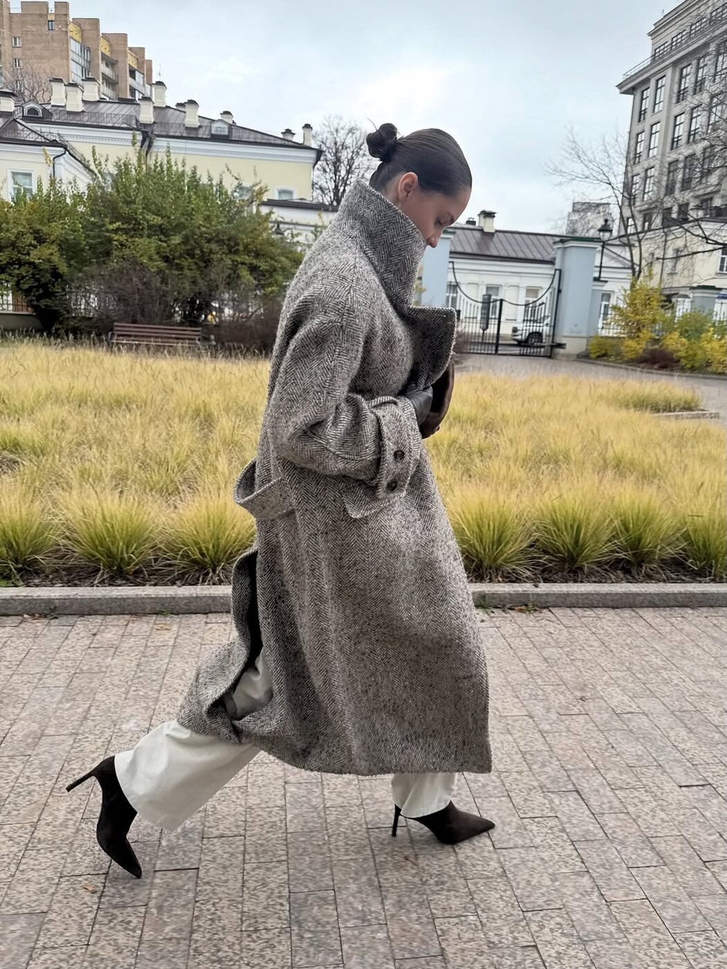 하이넥 코트는 겨울 아우터 중 없어서는 안 될 아이템입니다. 헤링본 소재의 코트에 목이 올라오는 디자인은 그 자체로 멋스럽죠. 왠지 모르게 세련되고 멋있는 파리지엔느를 연상케 하기도 하고요. 대놓고 꾸미지 않고 툭 걸치기만 해도, 고급스러운 멋이 완성되는 아이템입니다.