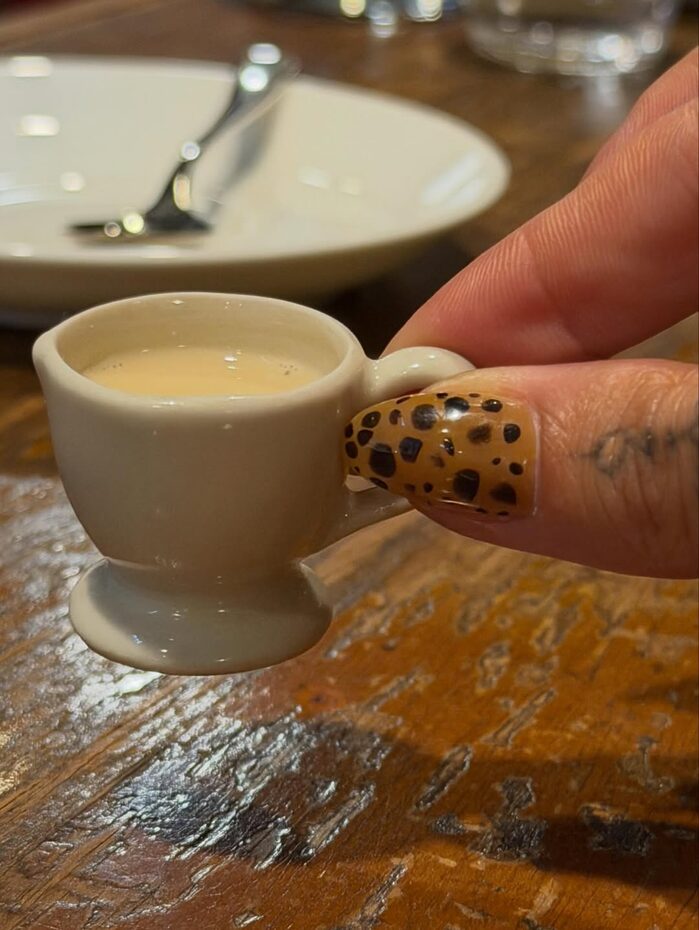 레오파드 패턴을 미니멀하게 변형한다면 이런 모습 아닐까요? 복잡한 디테일을 생략한 레오파드 패턴은 도트 패턴과 비슷한 형태를 띕니다. 특히 그의 네일과 페디큐어를 살펴보면 아주 옅은 브라운 컬러와 은은한 블랙 컬러의 조합을 확인할 수 있죠. 레오파드 패턴의 새로운 면면이군요.
