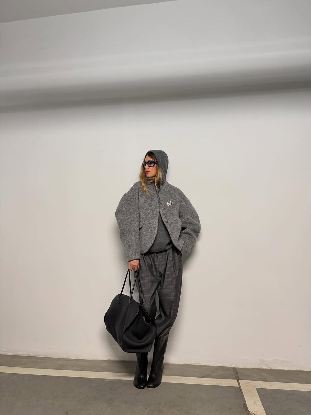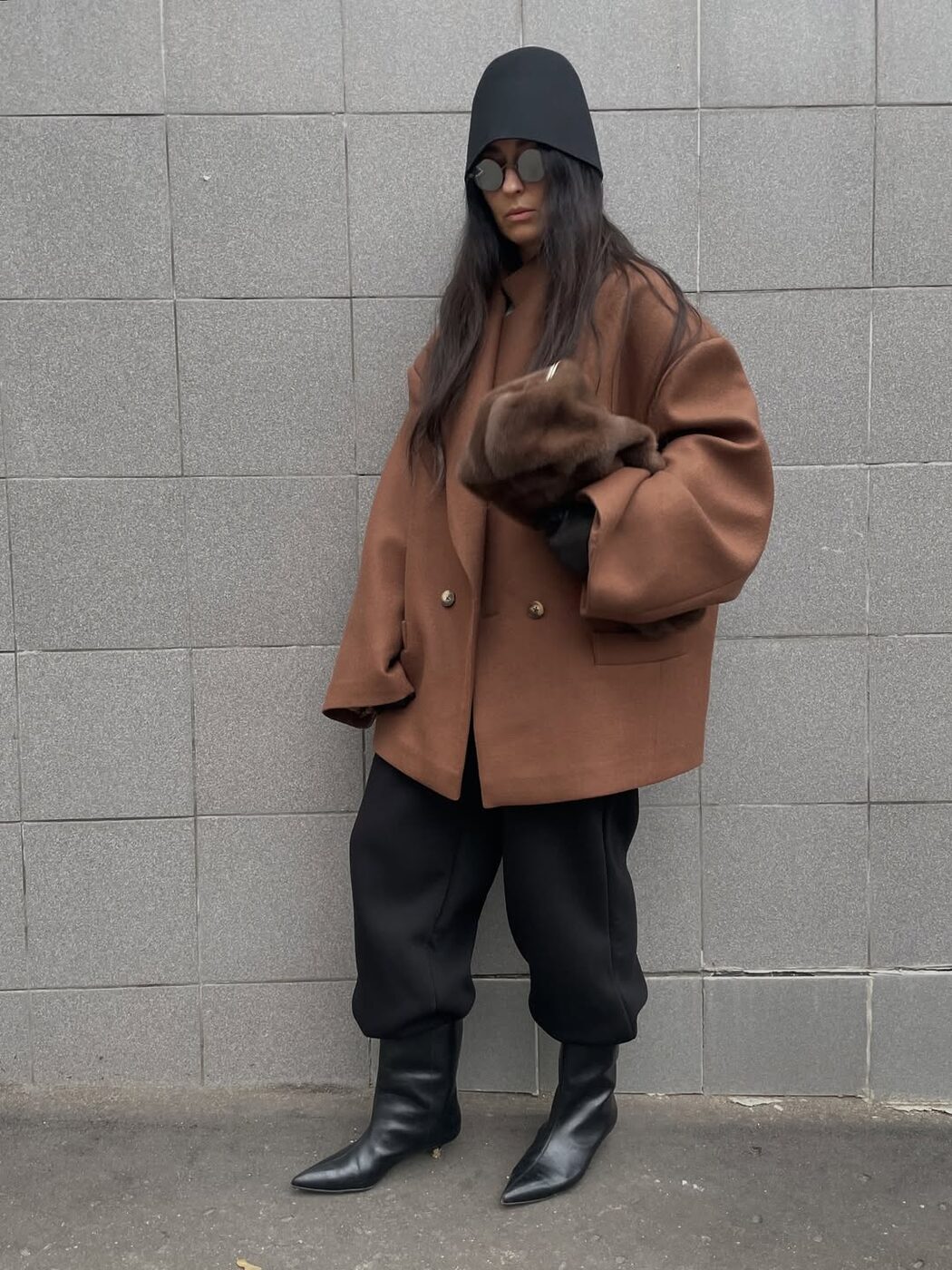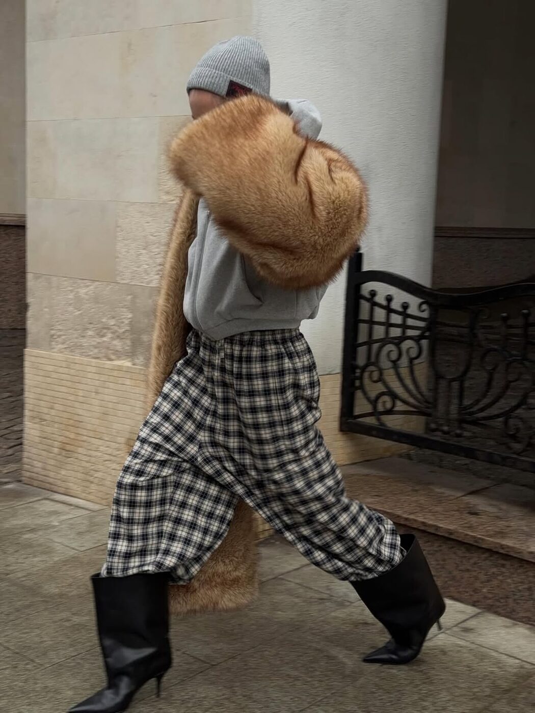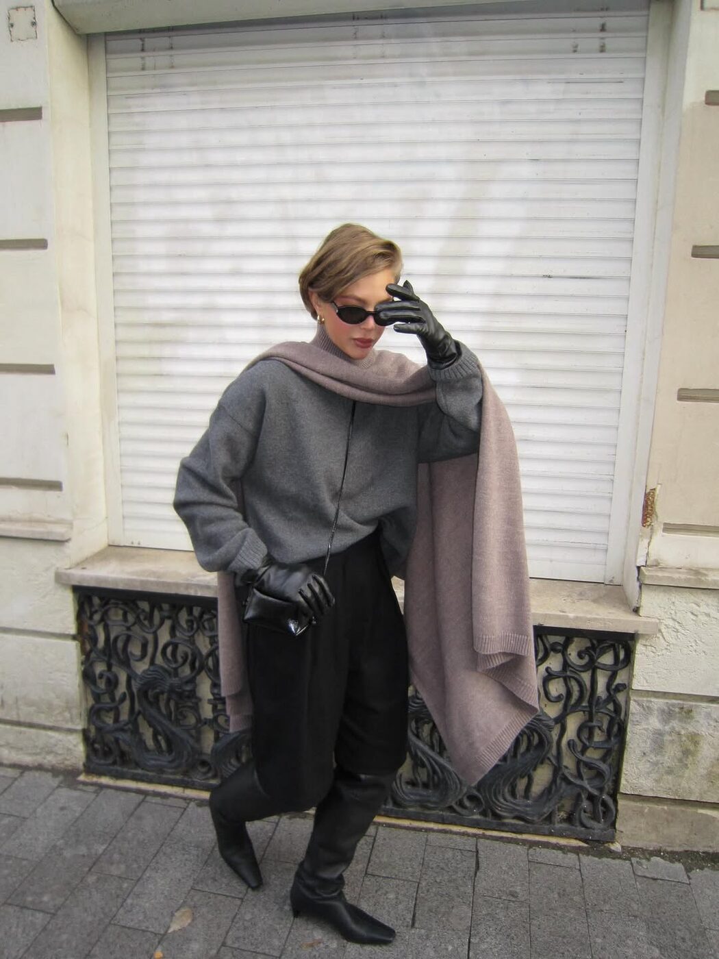 스타일의 핵심은 어떤 부츠를 선택하느냐예요. 발목까지 오는 앵클부츠보다는 무릎 가까이 올라오는 롱부츠나 미들 부츠, 그리고 통이 여유 있는 실루엣의 부츠를 고르는 게 좋아요. 그래야 바지를 넣었을 때 볼륨이 자연스럽게 잡히면서 부담 없이 멋스럽게 스타일링할 수 있거든요.
