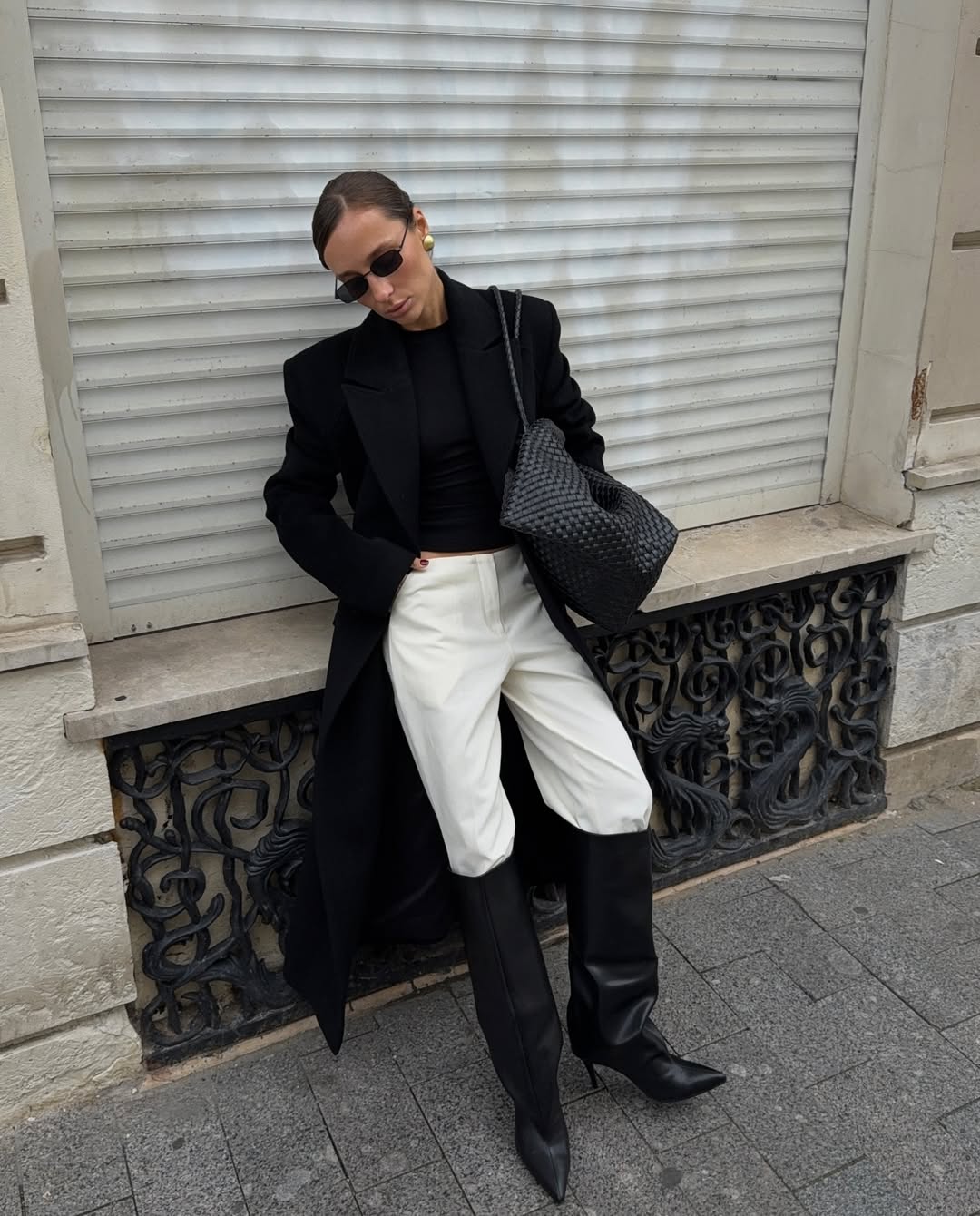 바지를 부츠 안에 넣어 입을 때는 바지 선택을 신중하게 해야 해요. 너무 두꺼운 소재나 플레어 진처럼 밑단이 넓은 바지는 부피가 생겨서 불편할 뿐 아니라 다리가 짧아 보일 수도 있어요. 그래서 슬림 핏이나 레깅스처럼 몸에 딱 맞는 바지가 가장 좋아요. 물론 너무 타이트한 실루엣이 부담스럽다면 적당히 루즈한 핏이거나 조거 팬츠처럼 발목이 잡힌 디자인도 쿨한 무드를 연출하기 좋답니다.