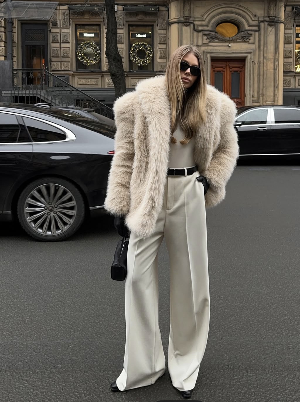 올겨울엔 눈처럼 하얀 털 코트가 킥입니다.
