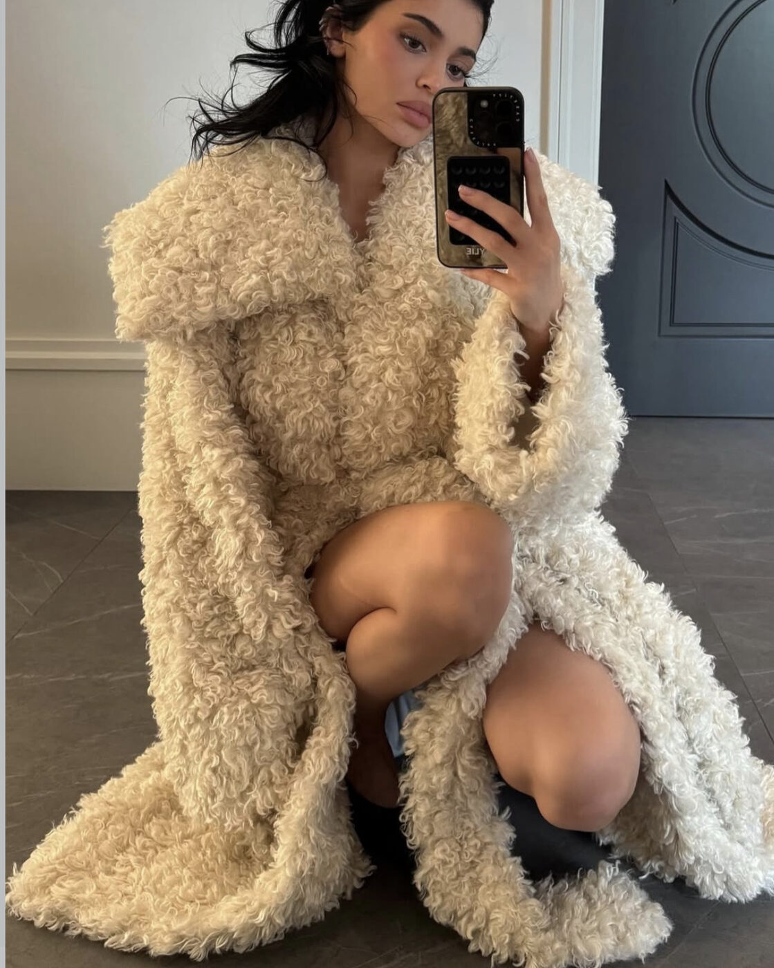 카일리 제너는 자신의 패션 브랜드 ‘Khy’를 통해 컬리한 화이트 퍼의 매력을 선보였어요. 글램룩의 일인자 답게 커다란 칼라와 넉넉한 소매 그리고 길이가 긴 글래머러스한 실루엣의 퍼 코트는 허리를 조이는 벨트가 필수죠. 동글동글한 퍼의 디테일이 따스하고 사랑스러운 무드로 연출합니다. 올겨울엔 블랙 아니 브라운 아니고, 화이트 털 코트를 입어야겠어요.