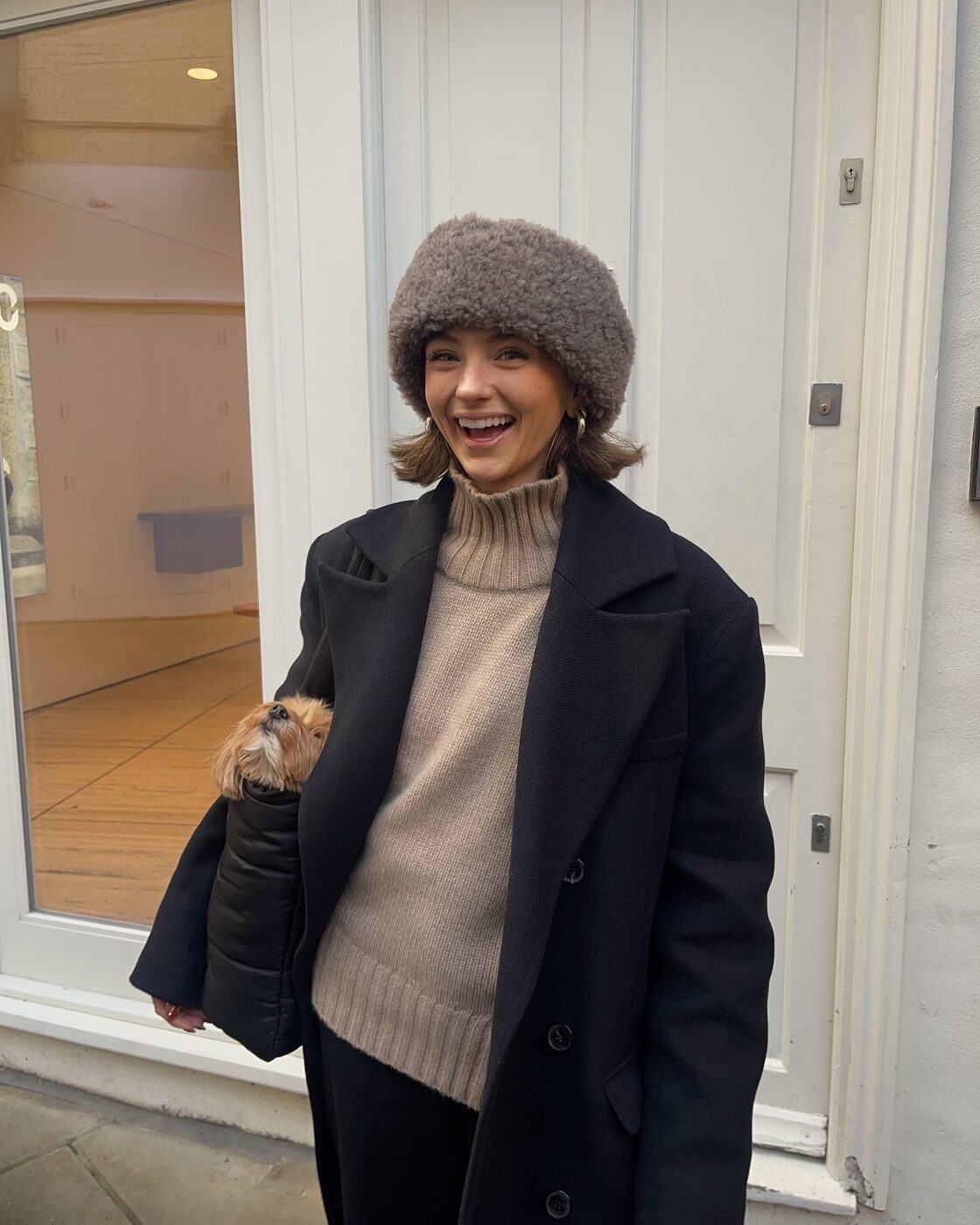 터틀넥 니트에 모자를 더하는 스타일링도 눈 여겨 보세요. 니트의 볼륨과 모자의 텍스처가 만나 자연스러운 레이어드 효과를 만들어내기 때문이죠. 퍼 텍스처의 버킷 햇이나 니트 비니처럼 소재감이 살아 있는 아이템을 선택하면 얼굴 주변의 여백이 정돈되며 룩이 한층 세련돼 보입니다.