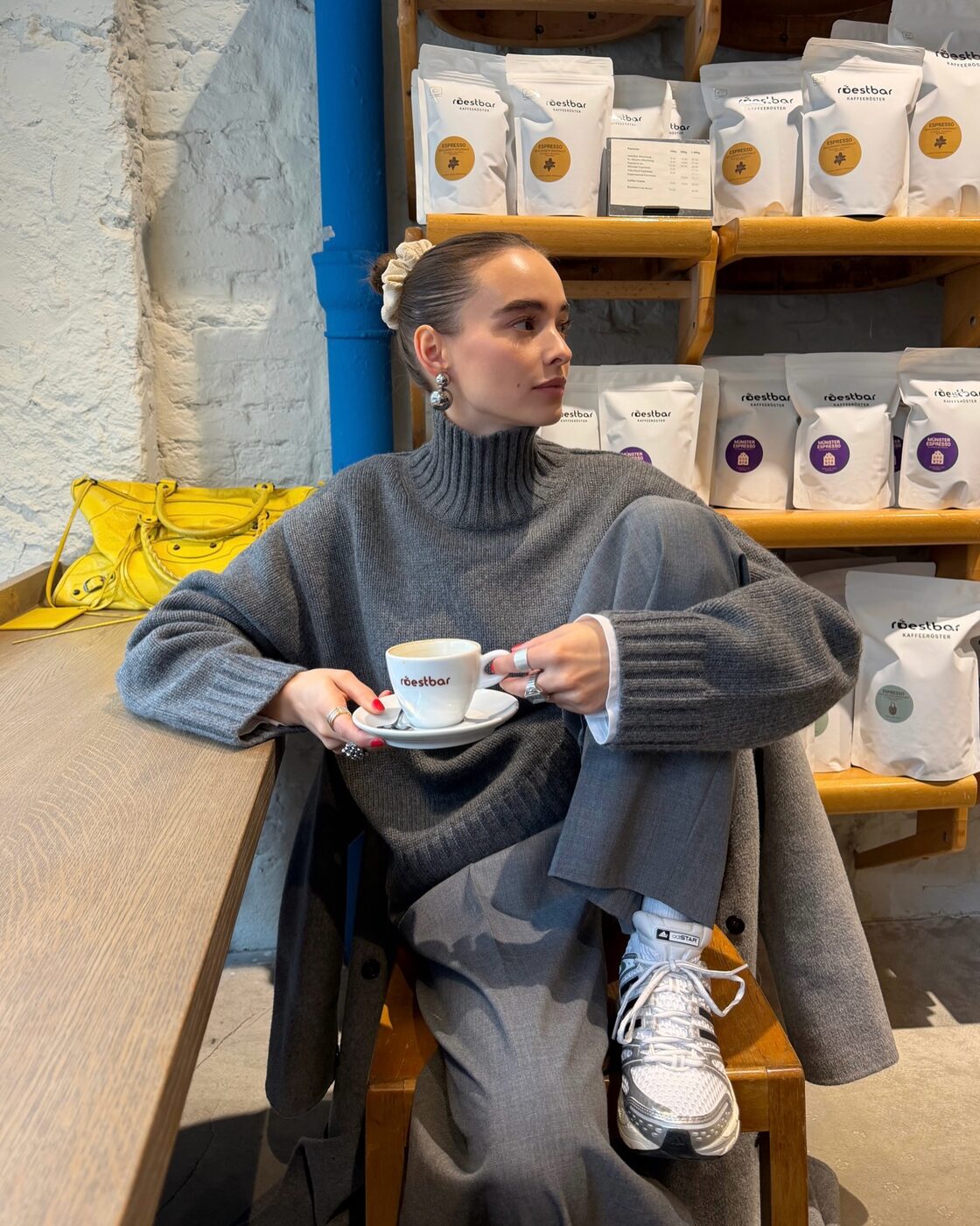 잔머리를 굳이 정리하지 않아도 괜찮고, 후프 이어링, 안경 같은 액세서리로 시선을 분산시키면 터틀넥 특유의 답답함도 자연스럽게 해소됩니다. 출근길이나 주말 외출처럼 손이 덜 가는 스타일링을 원한다면, 이보다 간편한 선택도 없습니다.