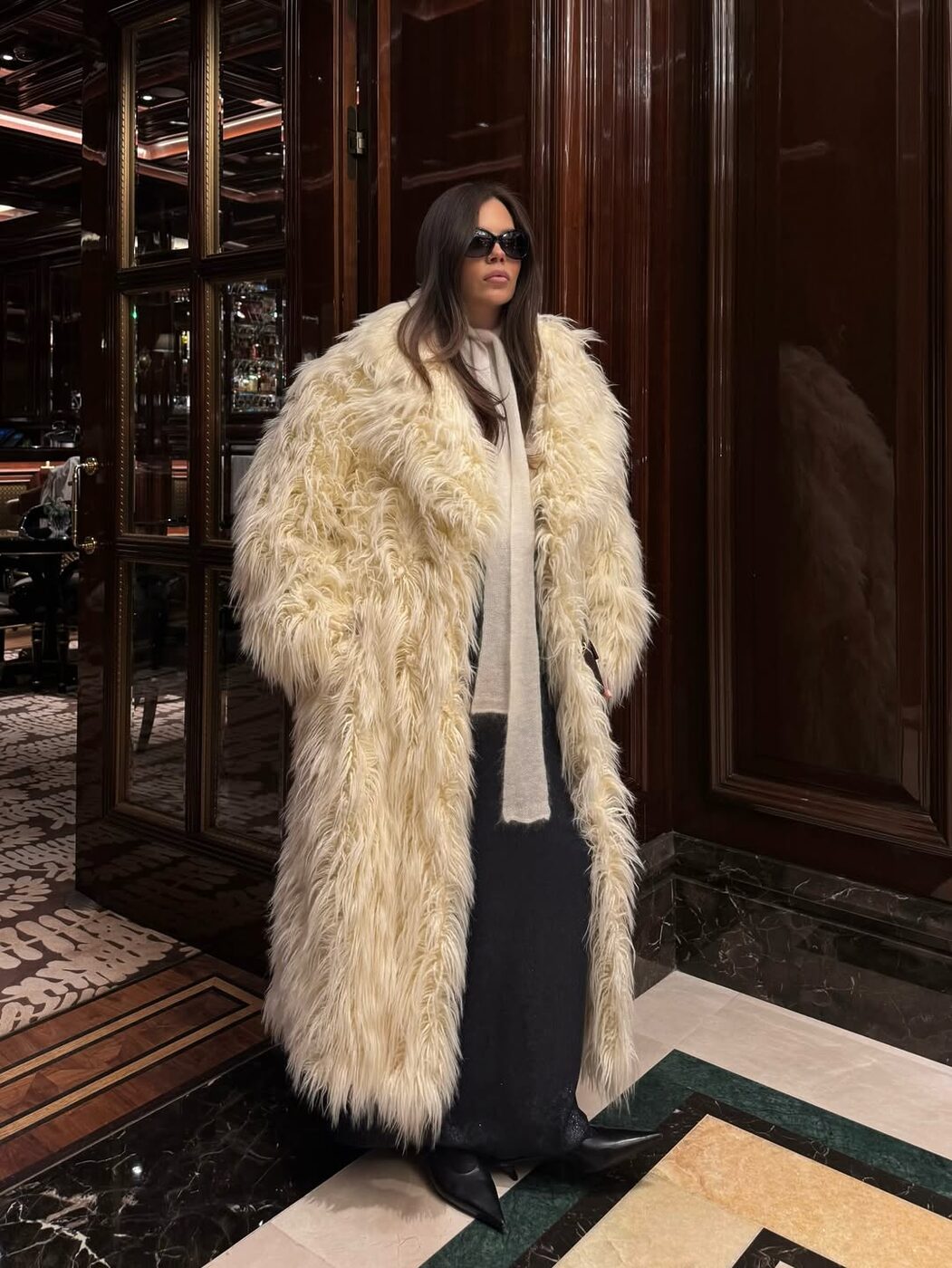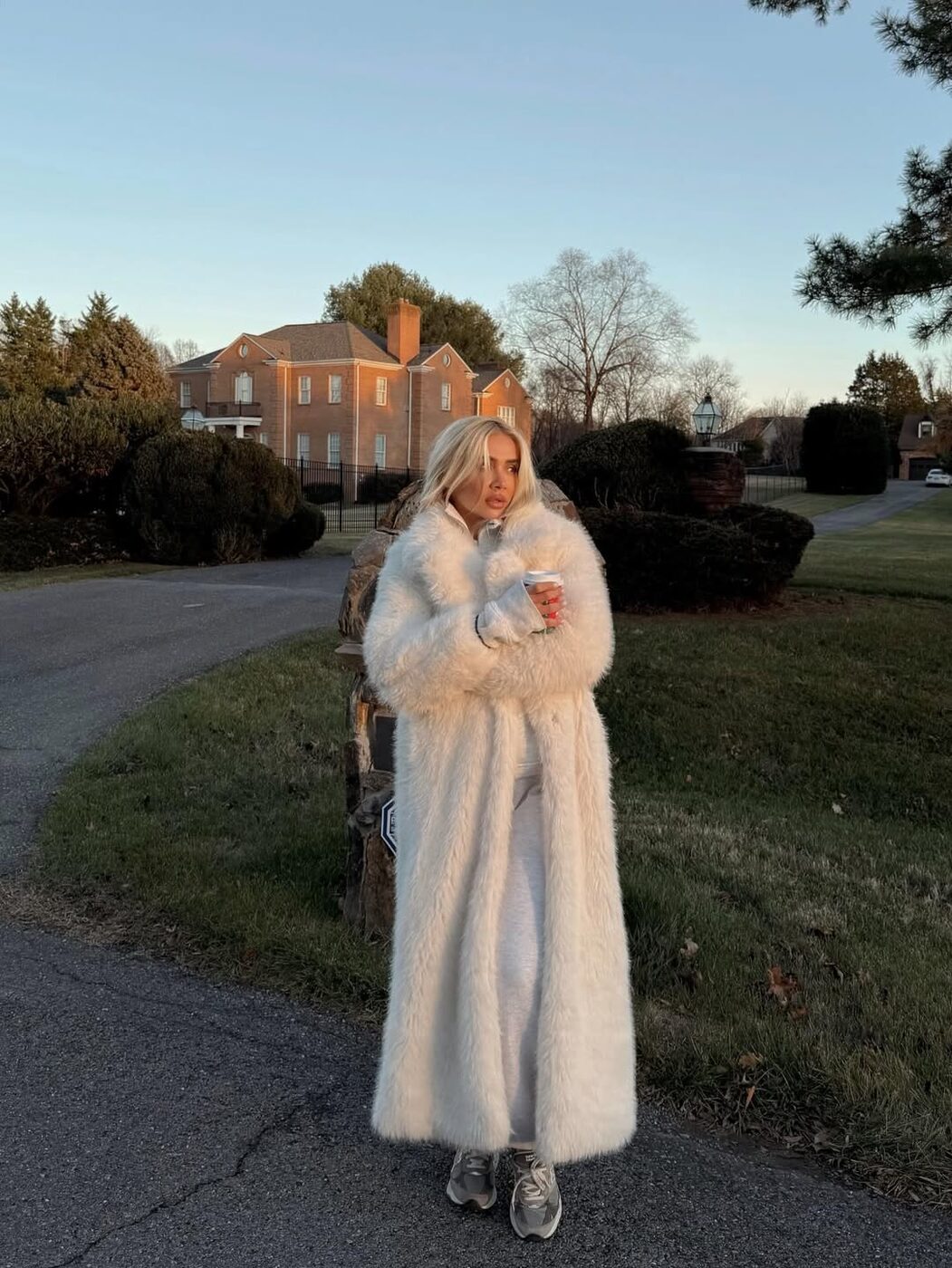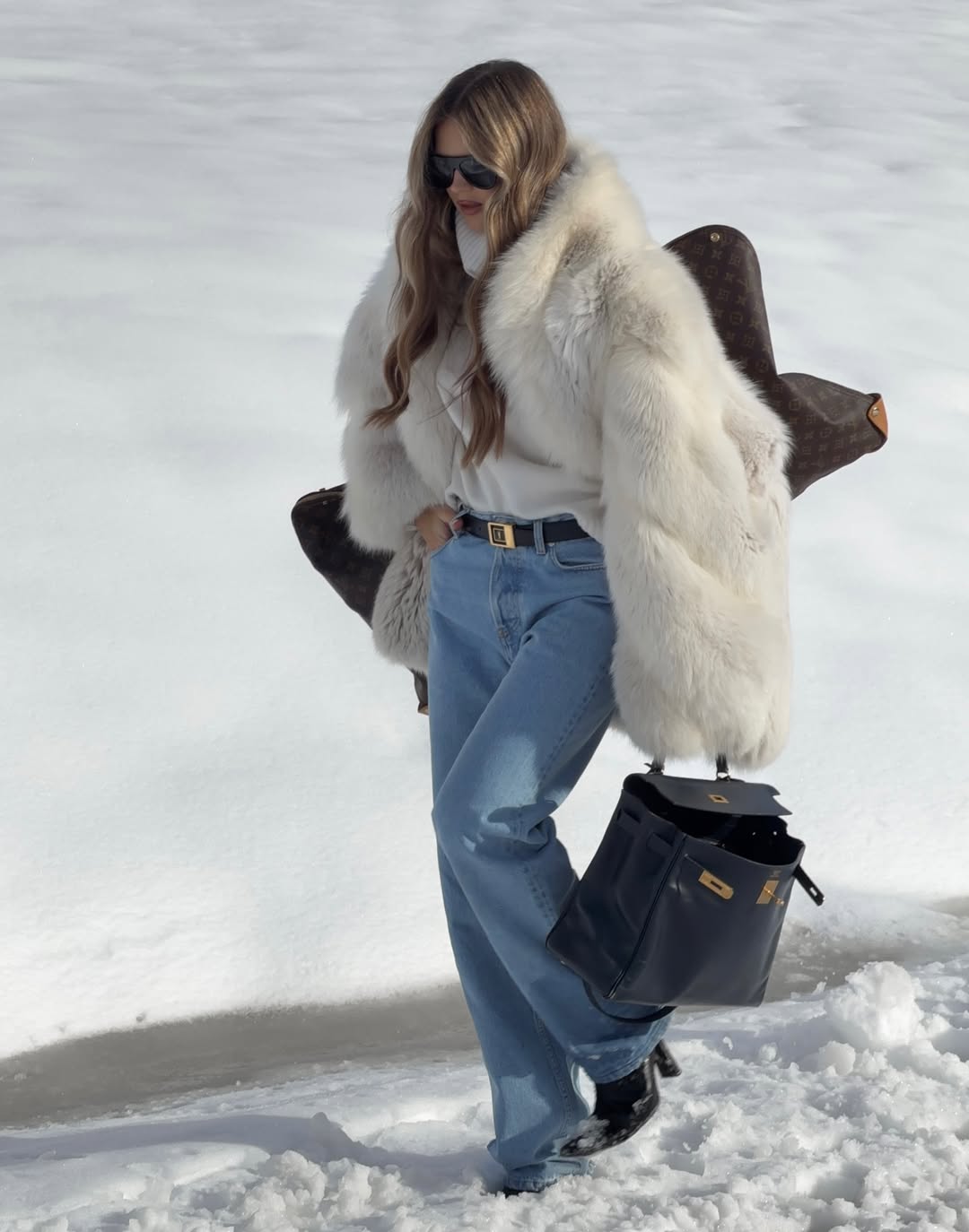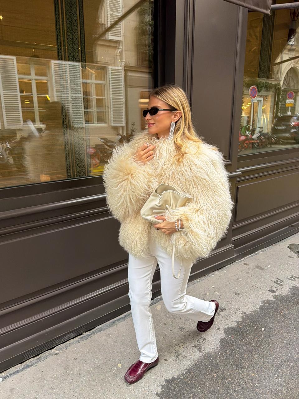 화이트 퍼를 멋지게 소화하는 비결은 생각보다 간단해요. 가장 기본적인 아이템과 함께 입는 것. 워낙 화려하고 존재감이 강하기 때문에 안에 입는 옷은 과하게 꾸밀수록 오히려 독이 될 수 있어요. 그래서 블랙 팬츠나 데님, 화이트 니트처럼 평소 즐겨 입는 아이템 위에 화이트 퍼 하나만 걸쳐도 분위기가 즉시 고급스러워지는 거예요.