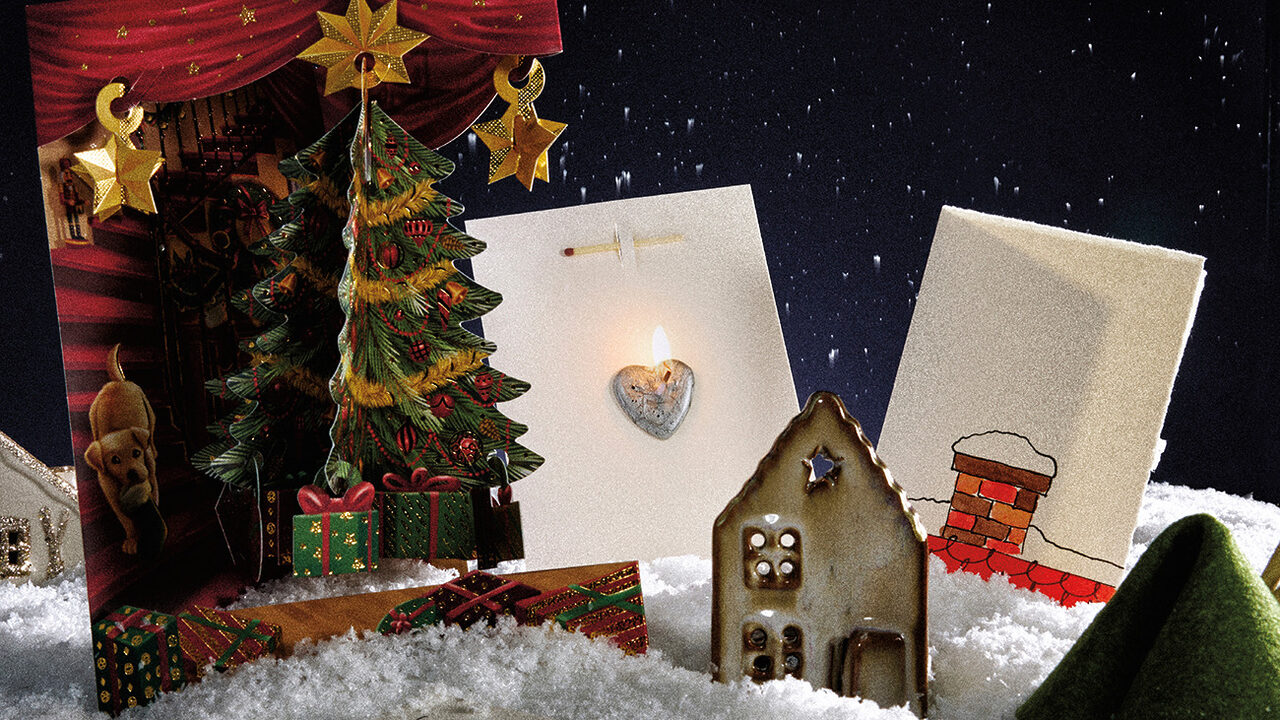 1. Santoro by Laughter And Forgetting 크리스마스트리 카드 포근한 크리스마스 풍경이 아른거리는 3D 엽서. 카드를 펼치면 스윙 트리가 모습을 드러낸다. 1985년부터 다채로운 입체 카드를 선보여온 영국 런던 기반 브랜드 산토로의 제품이다.