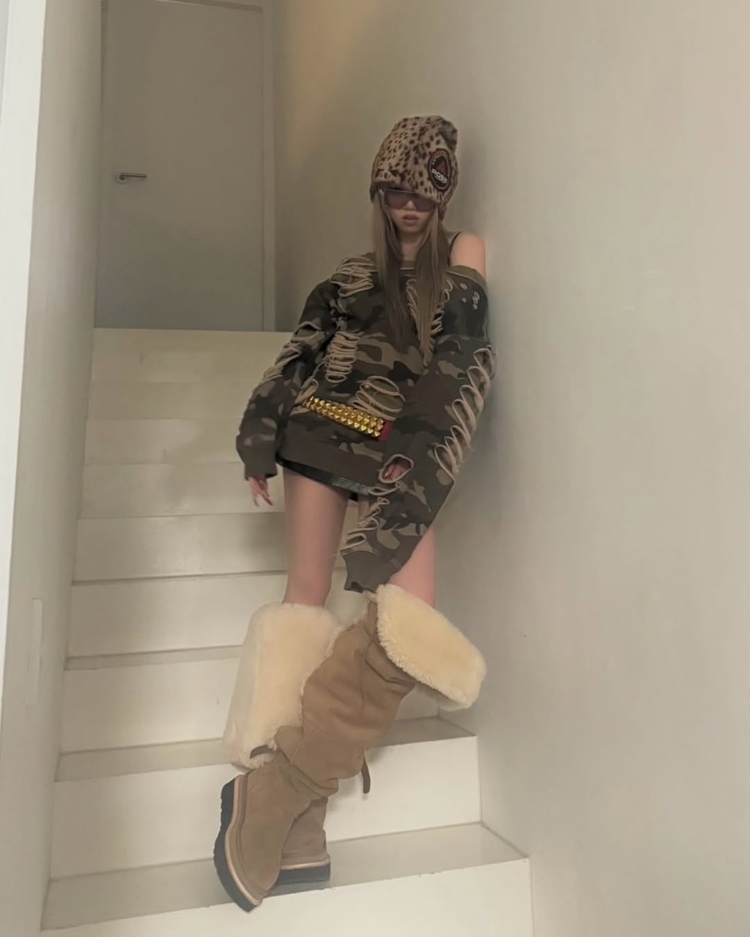 롱헤어의 청키한 앵클 부츠를 신은 닝닝부터 풍성한 시어링 롱부츠의 레이, 그리고 플랫한 퍼 슬라이더를 고른 문가영까지. 여러 셀럽들이 다양한 퍼 슈즈를 선택했지만, 모두 한 가지 공통점이 존재합니다. 미니멀한 룩에 매치했다는 것! 의상을 블랙으로 통일하고 다른 액세서리를 모두 생략해, 퍼 슈즈의 어마어마한 존재감만 각인시켰죠. 심플하지만 위트있는 연출이 너무 매력적으로 느껴집니다.