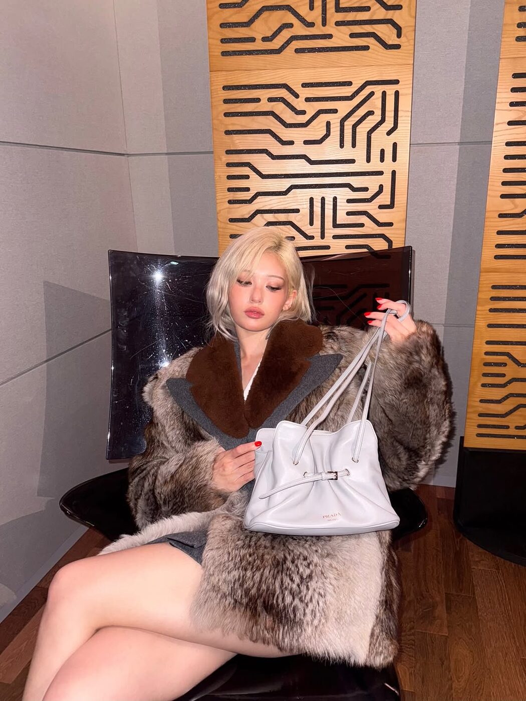 그렇다면 가방은 어떻게 연출하는 것이 좋을까요? 앞서 언급했던 퍼 스톨과 마찬가지로 퍼 백은 어떤 애티튜드로 대하냐에 더 주목하세요. 손으로 핸들을 정직하게 들기보다는, 스트랩을 짧게 조절해 겨드랑이에 끼고 몸에 밀착시켜 보는거죠. 마치 ‘반려 가방’을 대하듯 가방을 품은 자연스러운 모습이 퍼 백 특유의 매력을 한층 극대화해줄 겁니다.