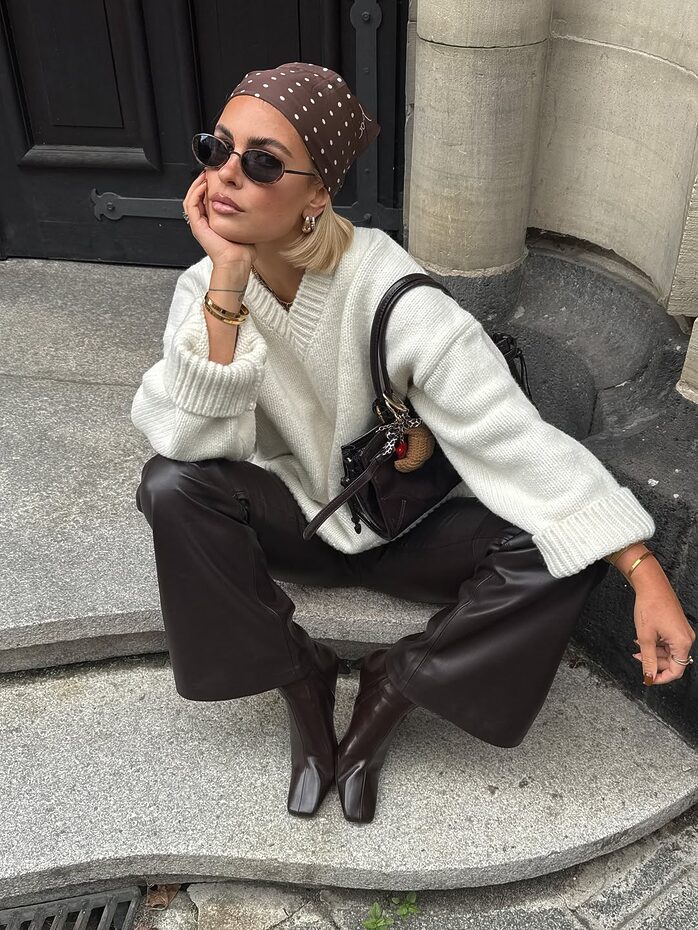 겨울이 오면 대부분 퍼나 두툼한 니트 같은 포근한 아이템부터 떠올리게 되죠. 하지만 겨울 스타일에서 조용히 존재감을 드러내는 건 의외로 레더 소재의 하의예요. 은은하게 반짝이는 레더 특유의 광택은 고급스럽고 세련된 분위기를 더해주고 니트나 울처럼 부드러운 소재와는 전혀 다른 단단하고 매끈한 질감이 룩을 또 다른 방식으로 시크하게 만들어줘요.