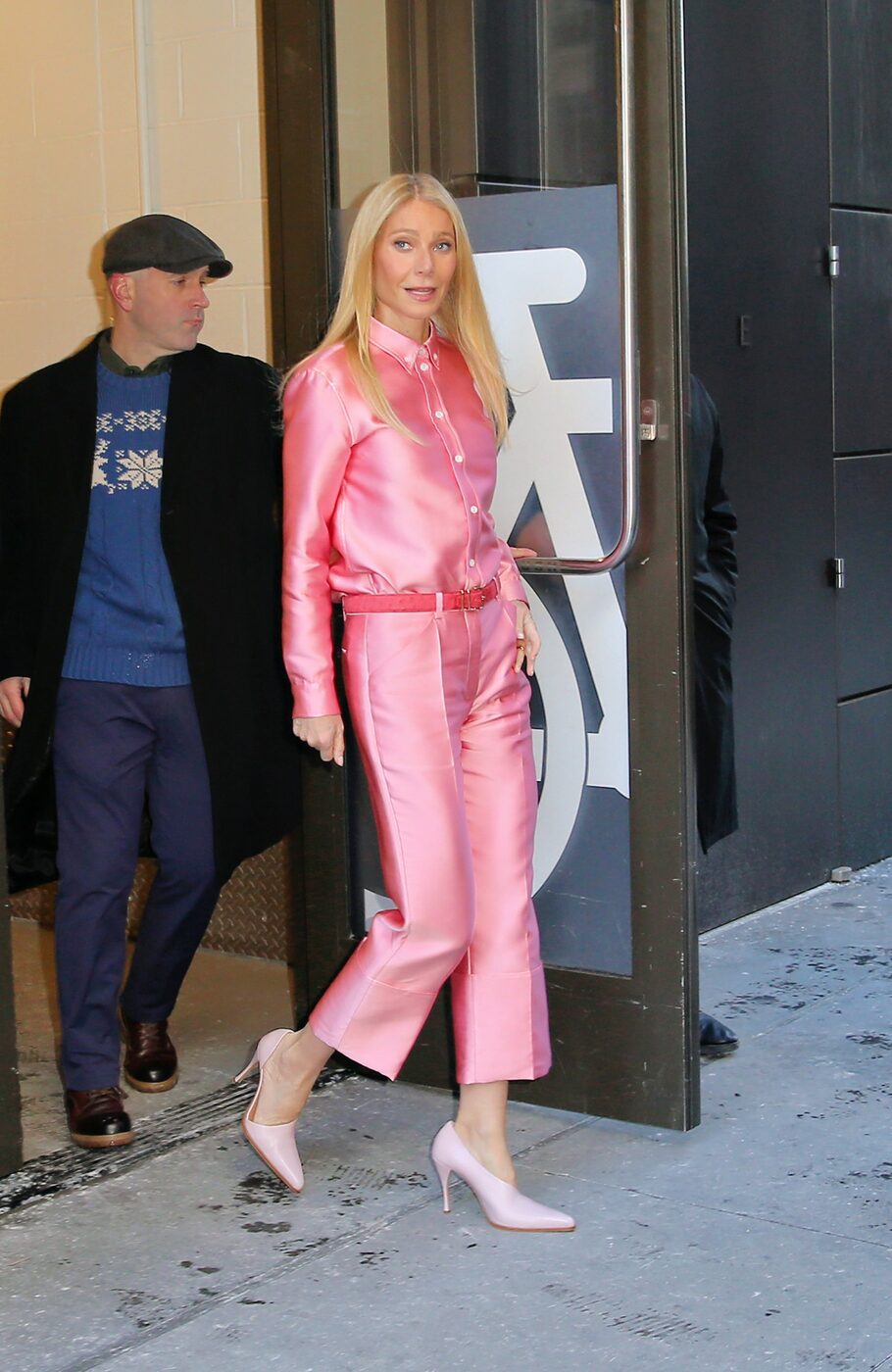 켈빈 클라인의 뉴 컬렉션 피스를 입고 영화 홍보 일정에 나선 기네스 펠트로. 그녀가 선택한 건 마치 바비 인형이 살아 움직이는 듯한 과감한 형광 핑크 컬러의 착장이었어요. 옷은 물론 벨트와 슈즈까지 분홍색으로 맞춘 올 핑크 룩은 53세의 나이를 물색하게 만들었죠.