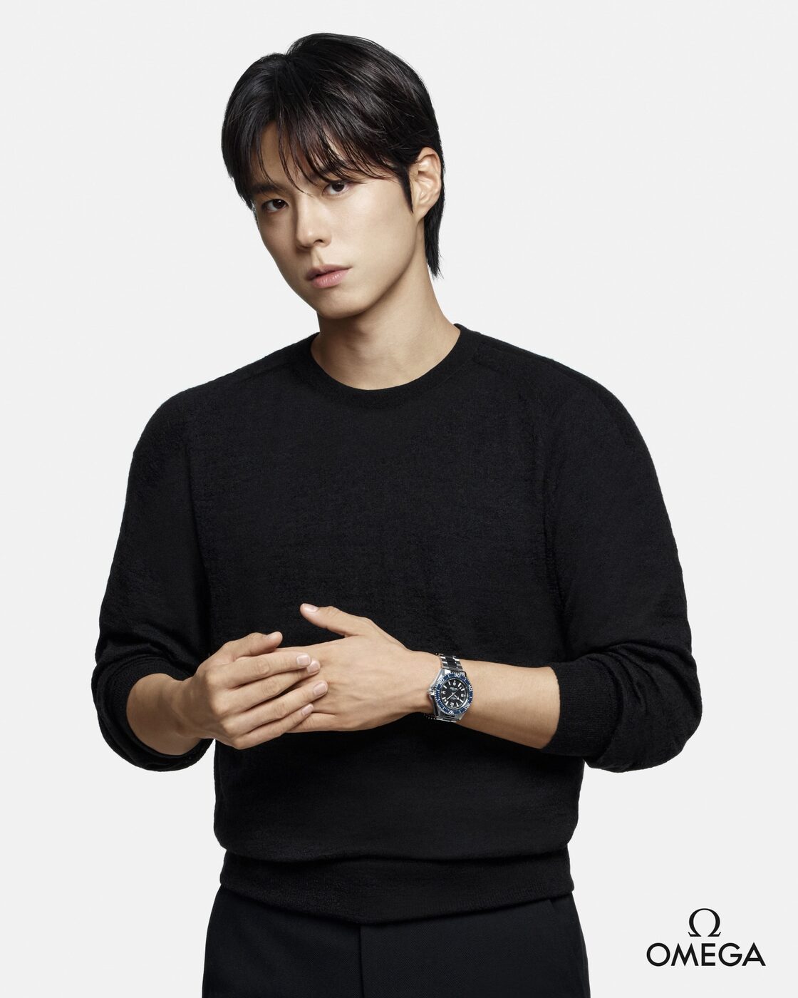 이번 글로벌 앰배서더 활동을 위해 박보검이 선택한 시계는 씨마스터 플래닛 오션(Seamaster Planet Ocean – Ref. 217.30.42.21.01.002). 스테인리스 스틸 소재에 폴리싱 처리한 블루 세라믹 베젤 링이 특징인 이 모델은 오메가의 역동적인 에너지와 정밀한 장인 정신에 대한 애정을 상징적으로 드러낸다.