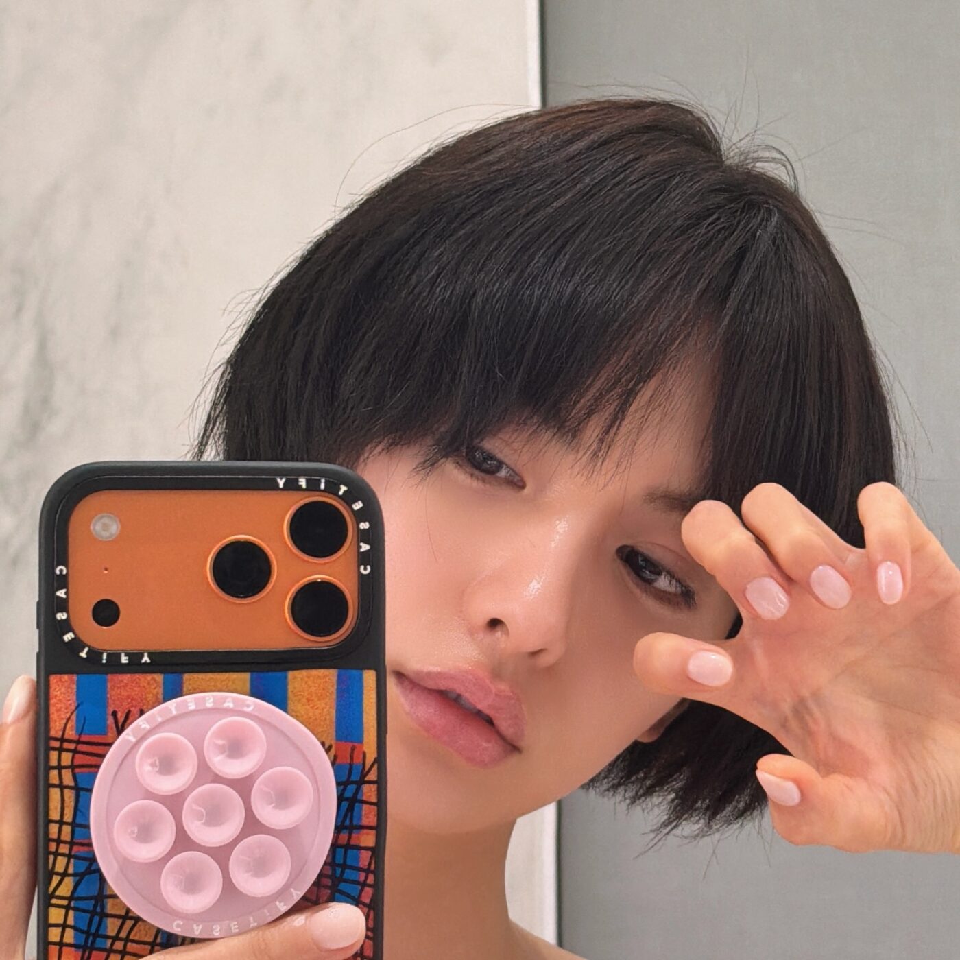 귀 밑 1cm 단발이 이렇게 세련될 수 있다는 걸 나나가 증명합니다. 단발은 작은 디테일 차이가 완성도를 좌우하는 스타일이죠. 흑발 테슬 커에 사이드 파트로 잔머리를 살짝 남기고, 뒷머리는 슬릭하게 고정해 시크한 무드를 완성했습니다. 턱선이 자연스럽게 강조되니 얼굴 윤곽도 한층 또렷해 보입니다. 단, 턱선이 둥근 편이라면 귀 아래 길이를 너무 짧게 자르기보다 2~3cm 여유를 두는 것이 훨씬 날렵해 보이니 참고하세요.