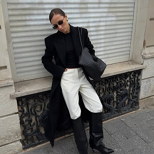 부츠의 존재감을 대놓고 드러내기 보다 의상의 일부처럼 자연스럽게 이어지도록 연출해 보세요. 늘 입던 평범한 의상일지라도 단숨에 패션 센스가 돋보이는 ‘느좋녀’로 레벨 업할 수 있답니다. 시크한 무드를 선호한다면, 맥시 코트에 롱부츠 매치를 추천해요. 과장된 실루엣의 아우터와 미니멀한 부츠의 대비가 드라마틱한 분위기를 자아낼 테니까요.