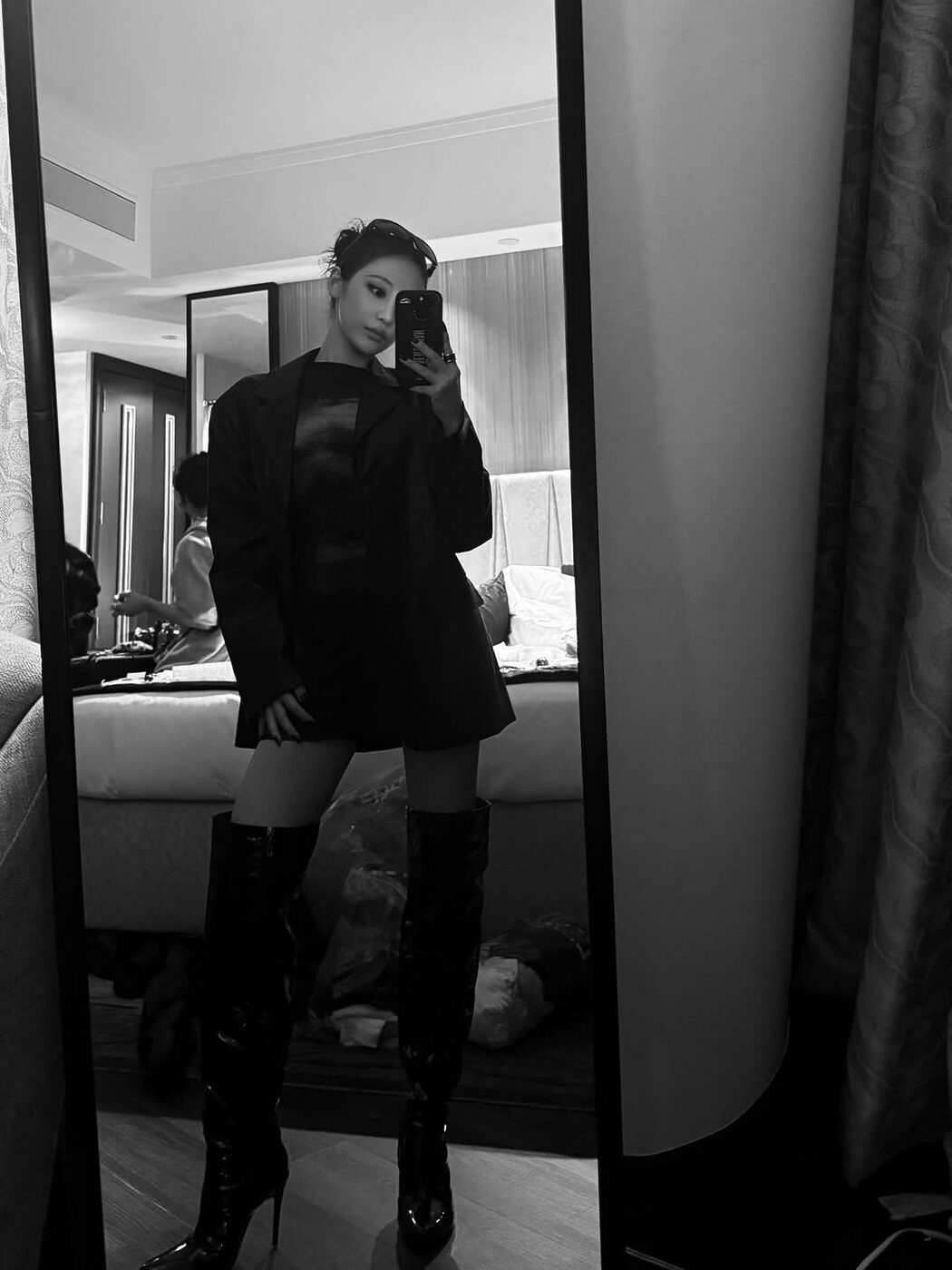 시크하고 센슈얼한 무드를 연출한 닝닝과 전소미는 날렵한 포인티드 토 하이힐을 선택해 다리를 더욱 길고 늘씬하게 강조한 반면, 안유진은 스퀘어 토 로우 힐 니하이 부츠로 걸리시한 분위기를 완성했습니다. 각자의 추구미에 따라 디테일은 달라도 좋지만, 이번 겨울 니 하이 부츠를 신을 거라면 절대적으로 슬림한 라인을 선택해야 한다는 것, 잊지 마세요.