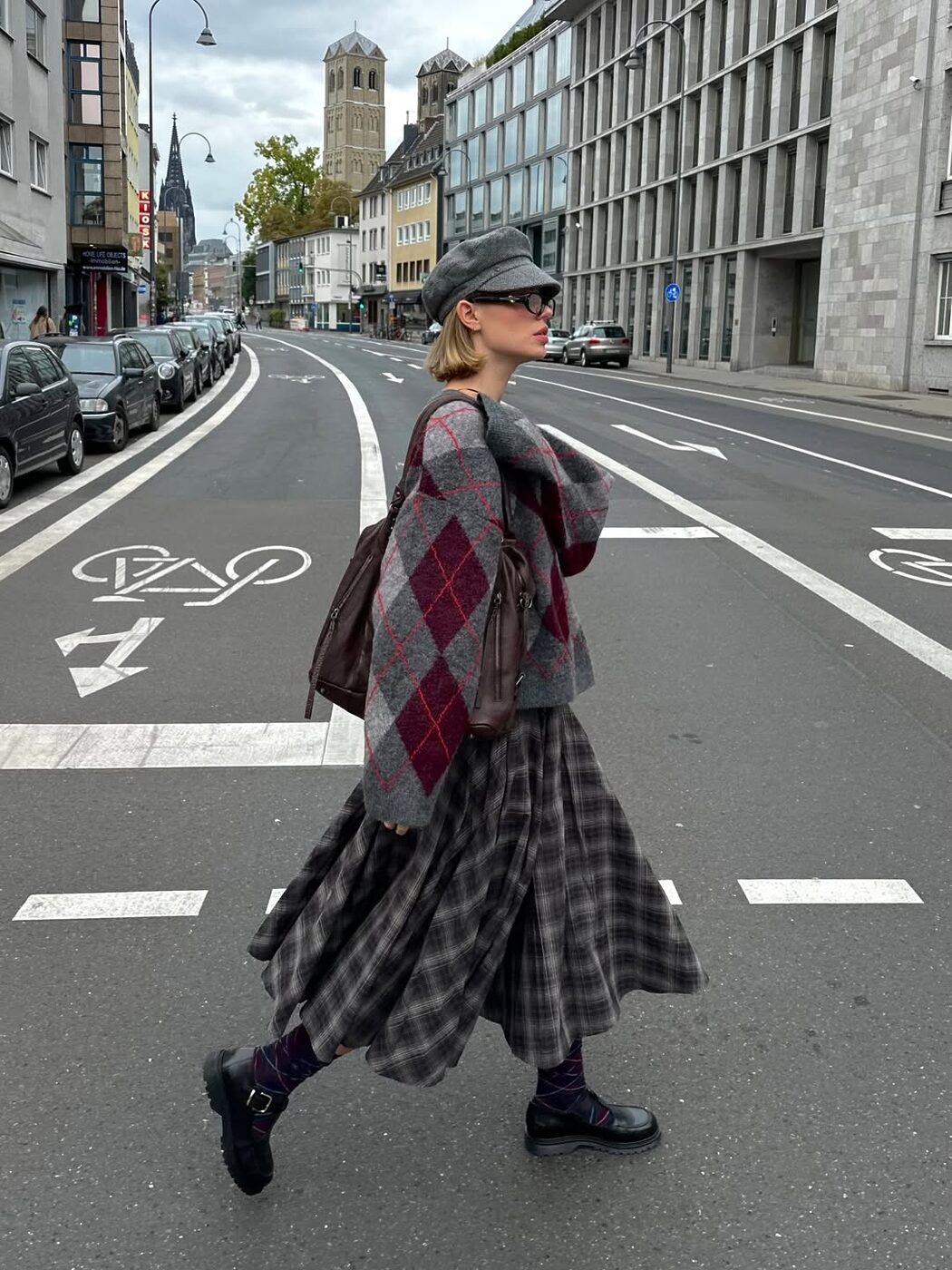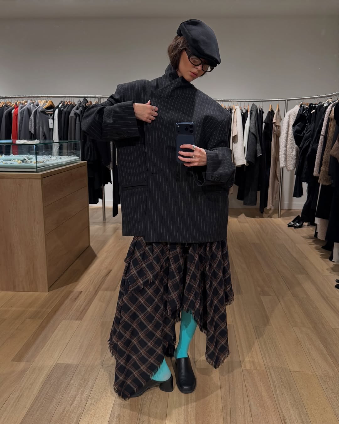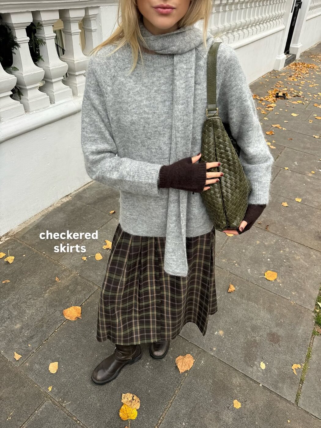 기장 선택도 중요해요. 무릎 아래로 내려오는 미디 기장 체크 스커트는 캐주얼부터 포멀까지 활용도가 가장 높고, 롱부츠나 앵클 부츠와도 잘 어울려요. 반면 발목까지 오는 맥시 기장의 롱 체크 스커트는 한층 차분하고 성숙한 무드를 만들어줘서 우아한 분위기를 연출하고 싶을 때 좋아요.
