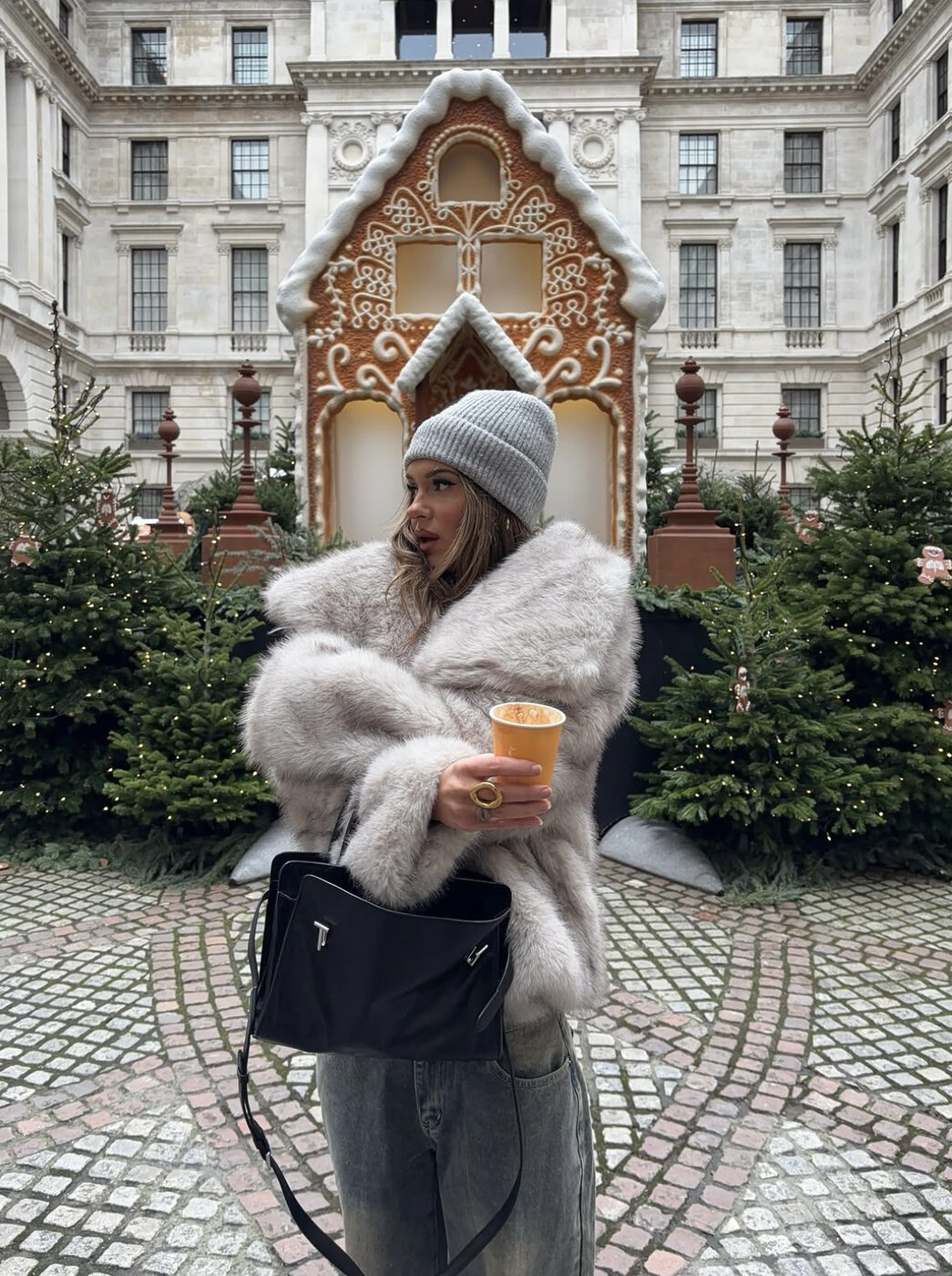 하의 역시 슬랙스나 스트레이트 데님처럼 핏이 너무 크거나 작지 않은 아이템을 선택해, 퍼의 복슬복슬한 존재감을 키워보세요. 액세서리도 마찬가지! 가방 컬러도 블랙으로 톤을 맞춰주고, 주얼리는 연말 모임에 맞게 포인트만 줘보세요. 반지나 시계 등 고급스러운 무드로 해주면 됩니다. 연말 약속부터 트리 보러 나가는 날까지 보온성까지 확실하나 두루 활용할 수 있는 룩이랍니다.