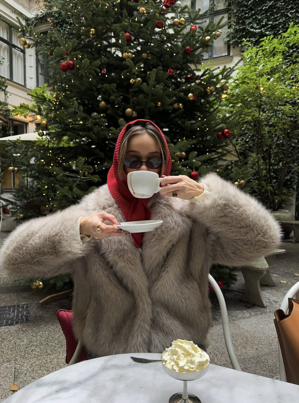 크리스마스니까 레드를 입고 싶은 마음은 충분히 알지만, 자칫 레드가 전체 옷차림을 점령하는 사태가 벌어질 때도 왕왕 있습니다. 그렇게 되면 한 끗 차로 너무 과하고 옛스럽게 보일 수 있다는 점을 주의하고, 꼭 하나의 아이템만 이 컬러를 선택해보세요. 코트는 브라운이나 부드러운 베이지 컬러로 포근함을 채우고, 레드는 머플러나 모자, 이너로 살포시 드러나게 또는 스타킹으로 등장시켜주는 거예요.