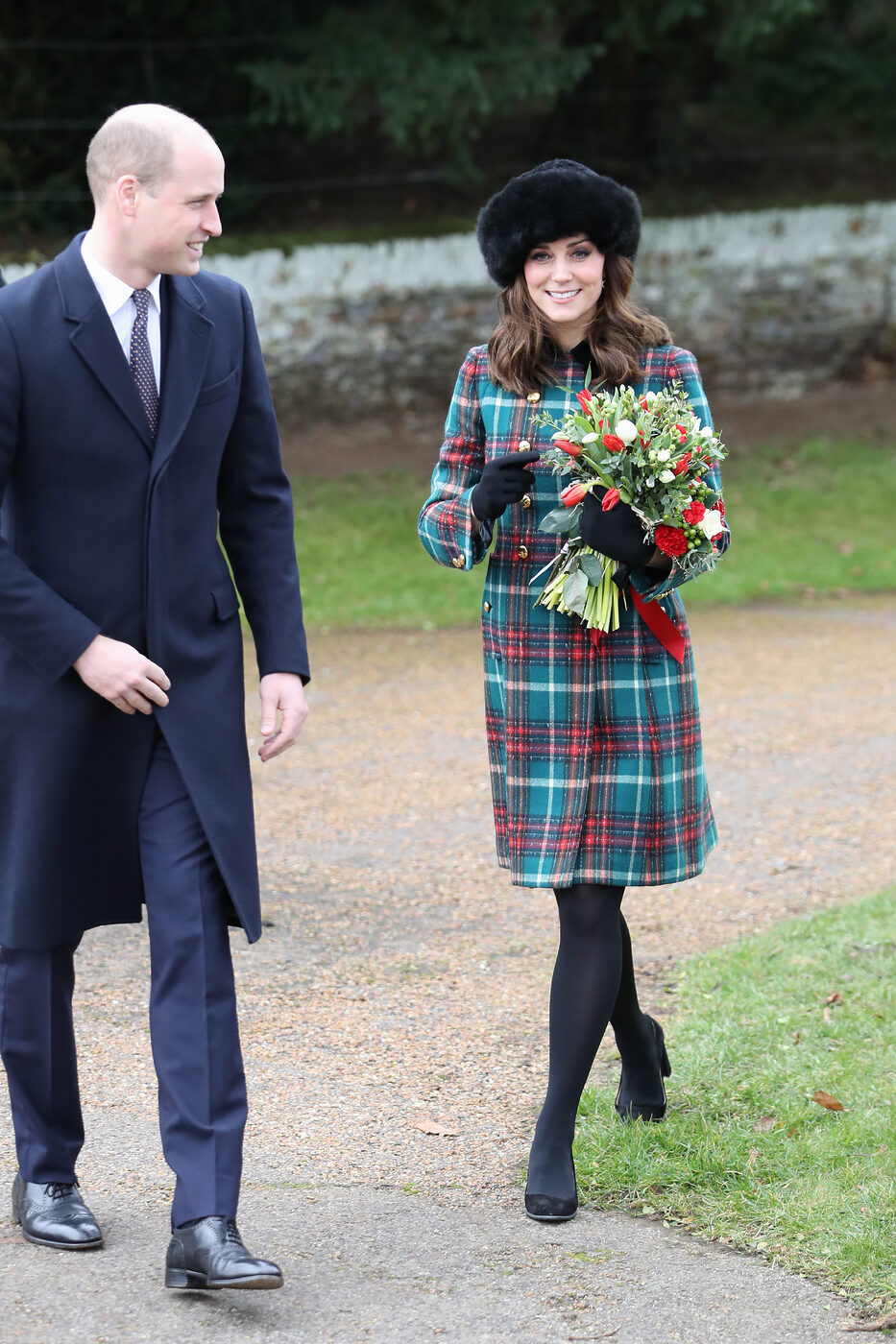 최근 근엄하고 우아한 미래 왕비의 자태가 드러나는 케이트 왕세자비에 비해 소녀 같은 모습이 엿보인 크리스마스 룩. 롱 코트가 아닌 무릎 위의 다소 짧은 반 코트는 그린과 레드의 전형적인 크리스마스 색이 들어간 체크 패턴으로 밝고 사랑스러운 분위기를 선보였어요. 여기엔 풍성한 퍼로 만들어진 모자로 더욱 사랑스러운 로열 룩을 완성했답니다.