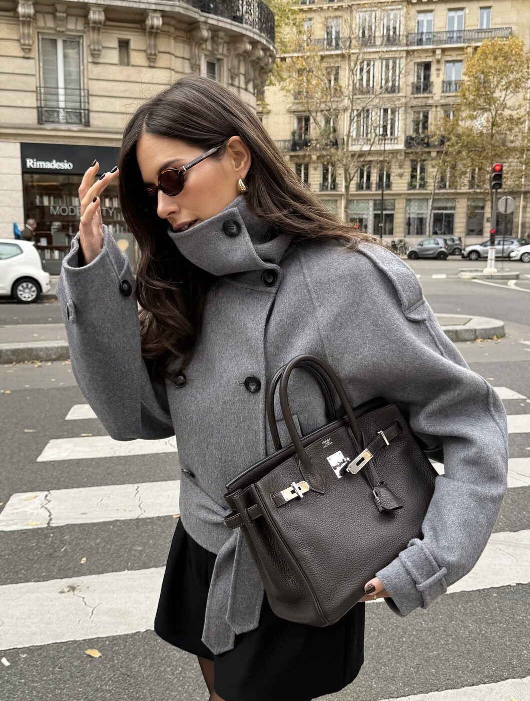 또 짧은 코트가 마냥 캐주얼하고 경쾌할 거라고만 생각한다면 큰 오해입니다. 소재가 더 묵직하고, 형태감이 있는 코트면 우아하고 고급스러워 보이는 건 식은 죽 먹기죠. 울이나 캐시미어처럼 힘이 있는 원단이면 더 좋고요. 어깨에 견장 디테일이었으면 더 구조적이어서 세련된 느낌도 낼 수 있겠습니다.