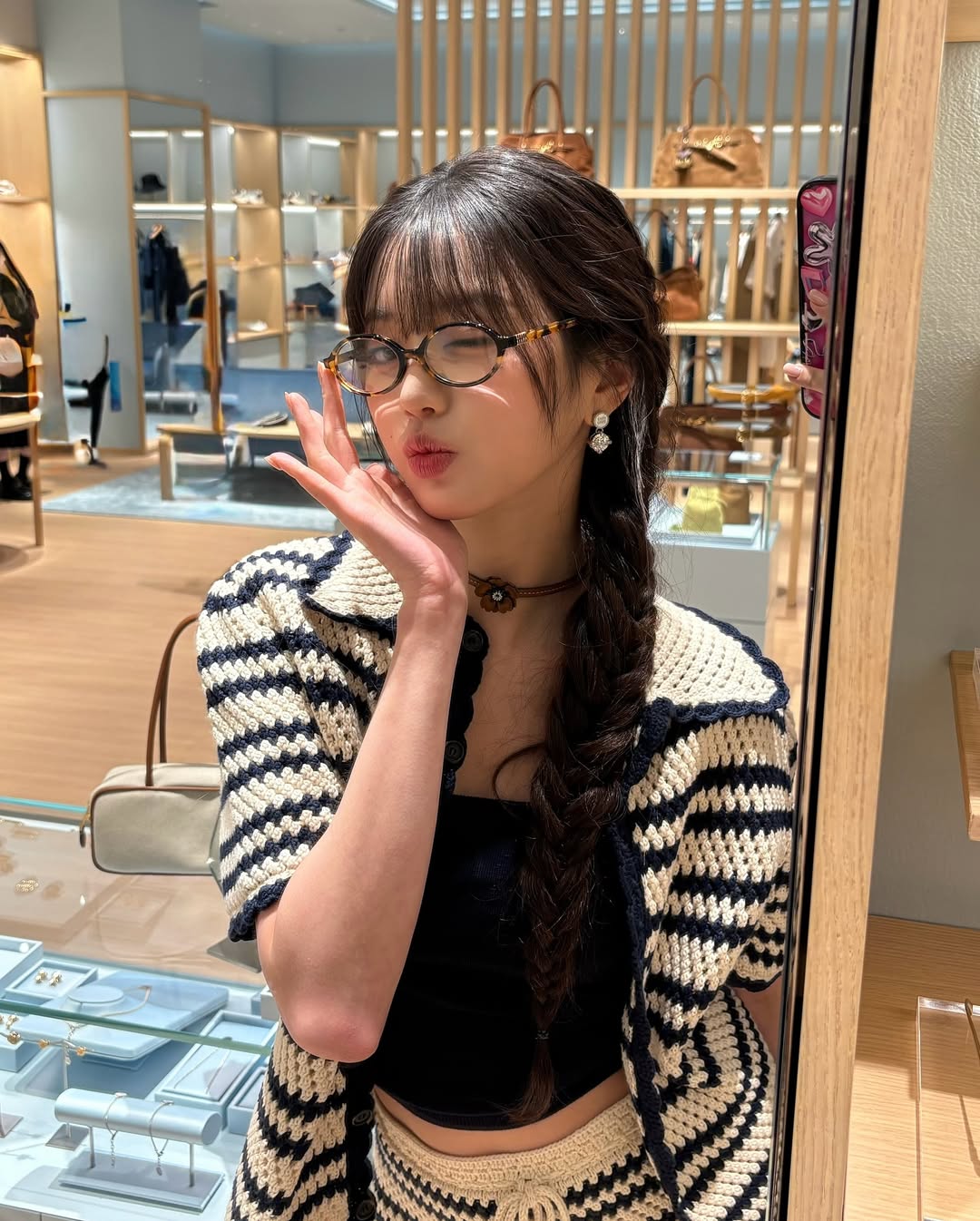 Y2K 패션의 연장선에서 발견한 긱 시크 아이웨어! 마치 셀피계 필수템이라도 된 듯, 아이돌부터 배우, 모델, 인플루언서 등 다양한 셀럽들의 ‘거울 셀카’에 빠지지 않고 등장했어요. 모두가 다른 안경을 착용했지만, 사각이나 오벌과 같이 구조적인 실루엣에 클래식 터치를 더한 레트로한 디자인이 특징입니다. 미니멀하지만 포인트 역할을 톡톡히 하는 스마트 아이템!