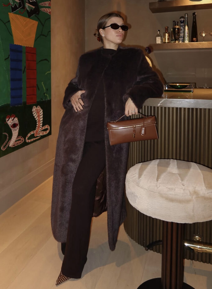 칼라와 포켓 등, 디테일이 없는 심플한 라인의 브라운 퍼 코트는 그 자체로 모던한 분위기를 선사하죠. 이너를 올 블랙으로 입거나 미니멀한 스트레이트 라인의 팬츠를 입는다면 깔끔하고 세련된 무드의 도회적인 퍼 패션이 완성됩니다. 손에는 심플하고 클래식한 토트 백 하나 들어주면 된답니다.
