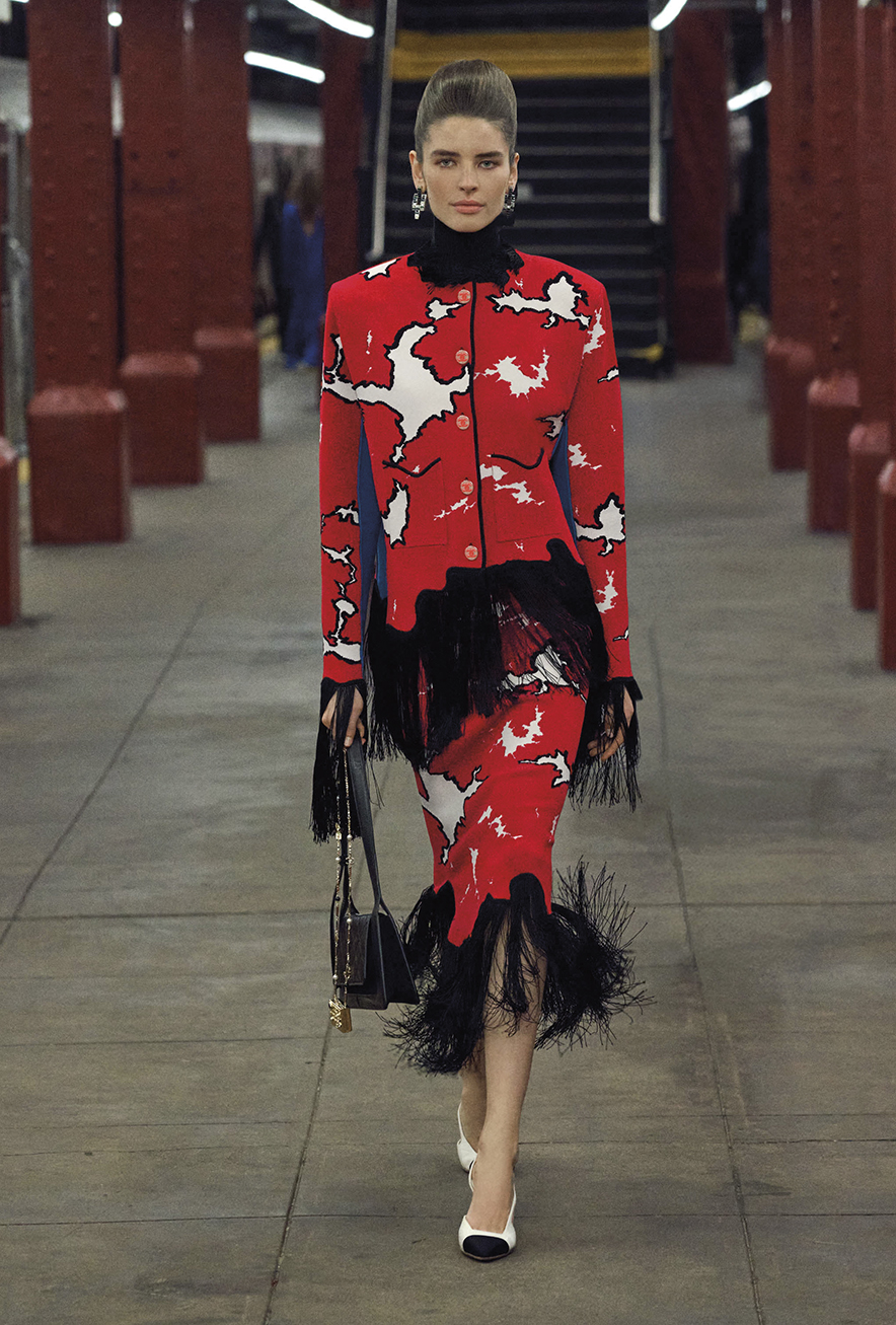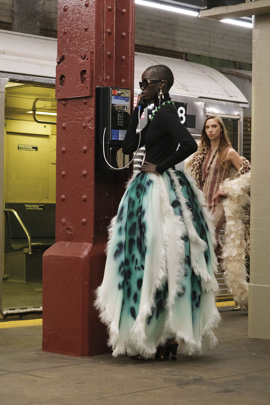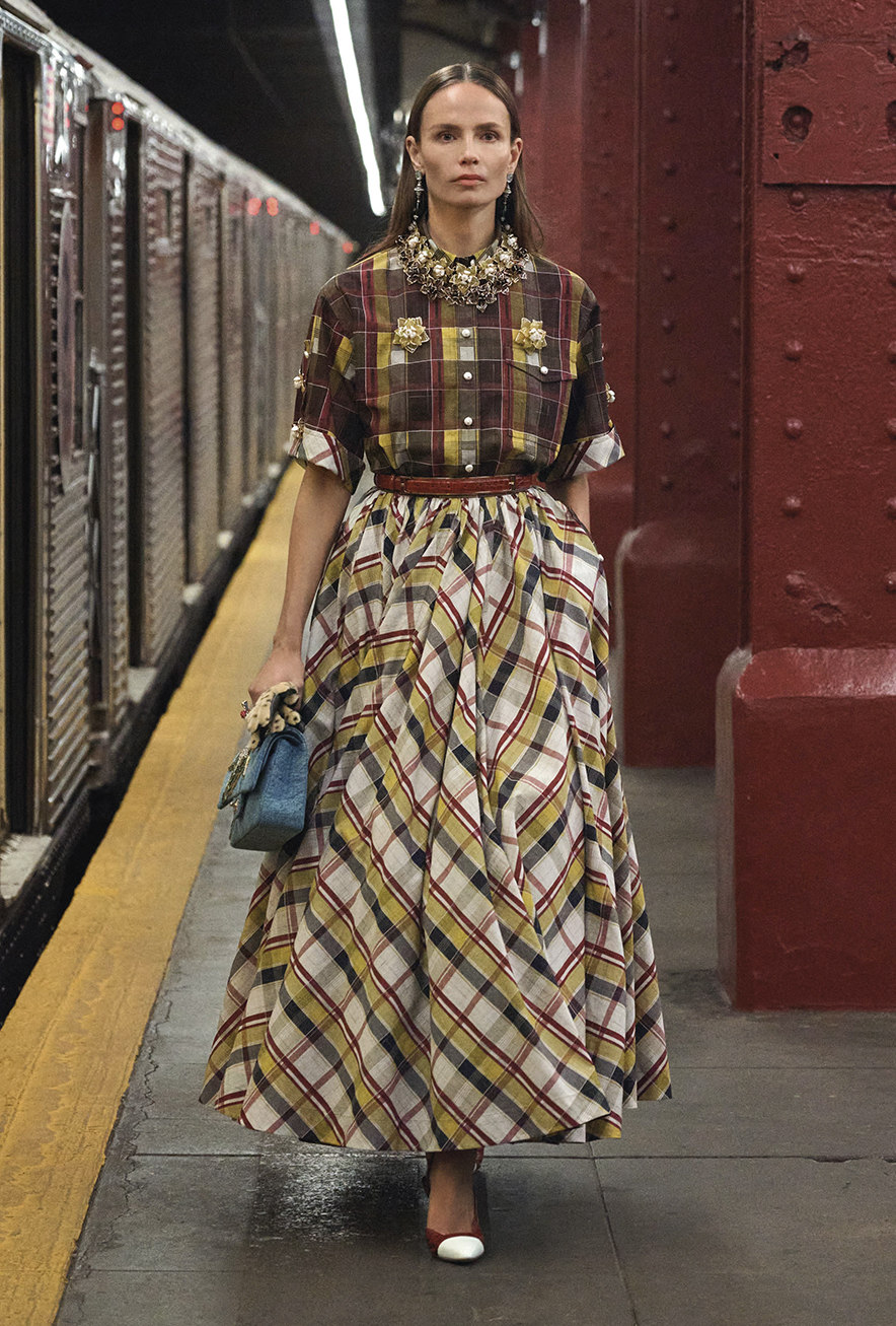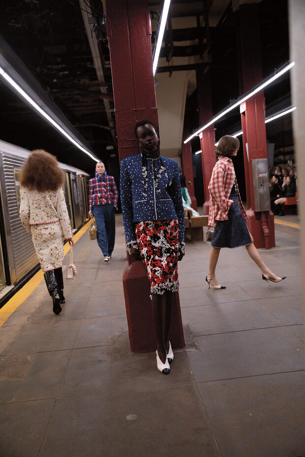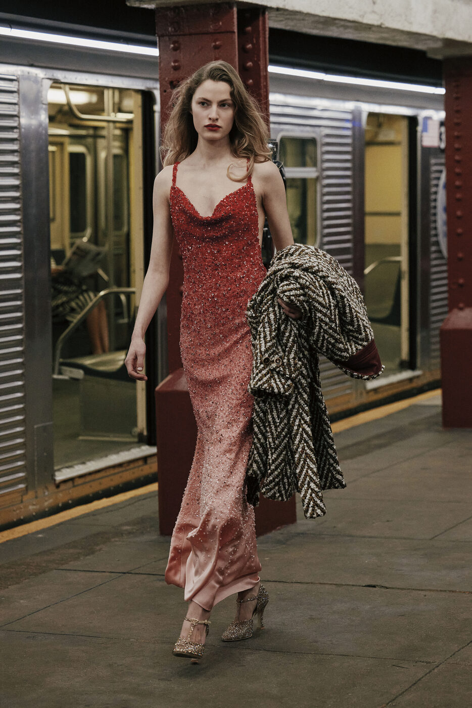 이번 쇼는 지금은 폐쇄된 바워리(Bowery)역에서 열렸다. 공간의 제한성을 우려한 생각을 비웃기라도 하듯, 오프닝 모델이 걸어 나왔고, 그와 동시에 실제 MTA 열차가 빠른 속도로 플랫폼에 들어섰다. 지하철 문이 열리며, 마치 플랫폼이 폐쇄되기 전의 활기를 되찾은 듯 모델들이 줄줄이 등장했다. 쇼는 선형의 시간 흐름을 따르지 않고, 1920년대 아르데코의 화려한 룩부터 2020년대 실크 라운지 룩까지 유영하듯 넘나들며 시대와 인물, 현실과 상상을 교차하는 서사를 쌓아갔다. 사교계 인사와 슈퍼히어로, 10대 아이부터 노인, 비즈니스 여성과 쇼걸, 마지막으로 코코 샤넬 그녀까지. 플랫폼 위에서 다양한 캐릭터의 개성이 담긴 이야기가 풍성하게 펼쳐졌다.