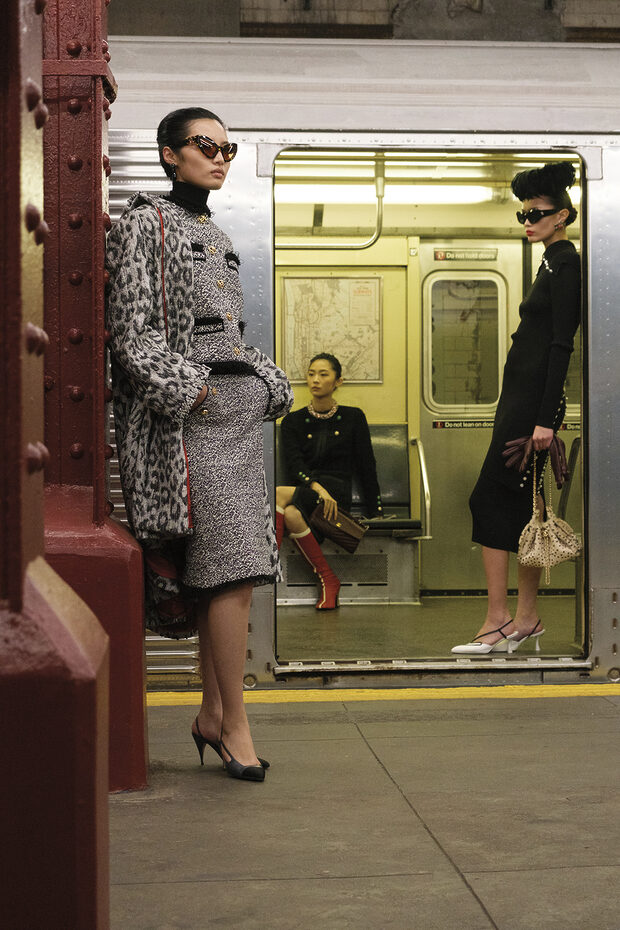 지난 10월, 뉴욕 맨해튼의 지하철역 앞에서 목격된 마거릿 퀄리(Margaret Qualley)와 에이셉 라키(A$AP Rocky)의 샤넬 2026 공방 컬렉션 티저 촬영 현장. 현장에서 찍힌 몇 장의 사진만으로 올해 공방 컬렉션을 향한 기대가 전 세계로 순식간에 번져 나갔다. 이번 쇼는 샤넬의 아티스틱 디렉터 마티유 블라지(Matthieu Blazy)가 선보이는 첫 번째 공방 컬렉션이기에, 그 관심은 더욱 집중될 수밖에 없었던 것. 현재 가장 각광받는 디자이너인 그는, 올해 공방 컬렉션의 무대로 뉴욕 지하철을 선택했다. 끝없이 움직이고, 서로 다른 존재가 스치며, 결코 머무르지 않는 공간. 뉴욕의 지하철은 도시의 축소판이자 패션의 은유기도 하다. 그는 이 공간에 대해 “뉴욕 지하철은 모두의 것입니다. 학생부터 혁신가, 예술가, 정치인까지 누구나 이용하죠. 신비롭고도 멋진 만남이 가득하고, 다양한 캐릭터들이 충돌하는, 자기만의 방식으로 차려입은 사람들이 각자의 갈 길로 향하는 곳이에요. 영화 속 이야기처럼, 그들은 각자의 이야기 속 주인공입니다”라고 말했다. 그의 시선으로 재해석한 뉴욕의 지하철은 샤넬의 새로운 ‘서브웨이 컬처’가 펼쳐질 무대로 변모했다. 마티유 블라지가 뉴욕을 쇼 장소로 선정한 데에는 가브리엘 샤넬의 이야기도 담겨 있다. 1931년, 그녀가 할리우드를 오가는 길에 머문 뉴욕에서 느낀 감정을 이번 컬렉션의 출발점으로 삼은 것. 그 시기 샤넬은 자신의 스타일을 자유롭고 생기 넘치게 드러내는 뉴요커들을 보며 이 도시 속 패션 브랜드들이 어떠한 매력을 가져야 하는지 깨달았다고 한다. 당시의 경험은 그녀에게 새로운 시각을 제시했고, 이번 컬렉션은 그 기억을 오늘날의 감각으로 재탄생시켰다.