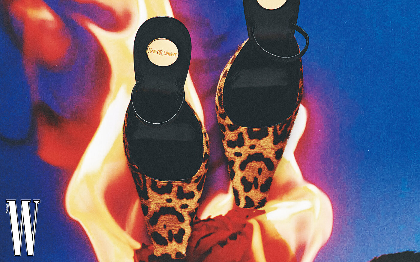 레오퍼드 프린트 슬링백 펌프스는 생 로랑 제품.