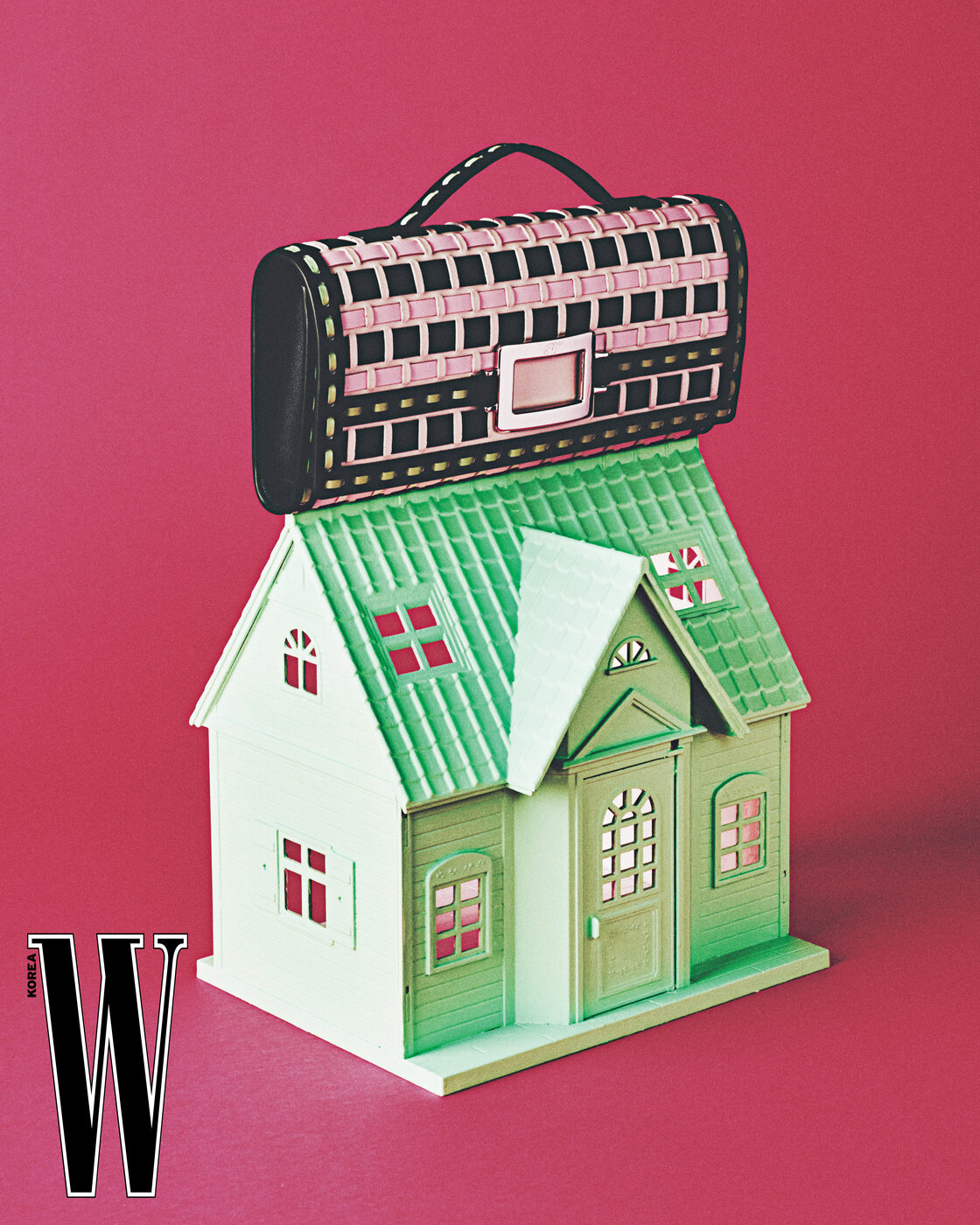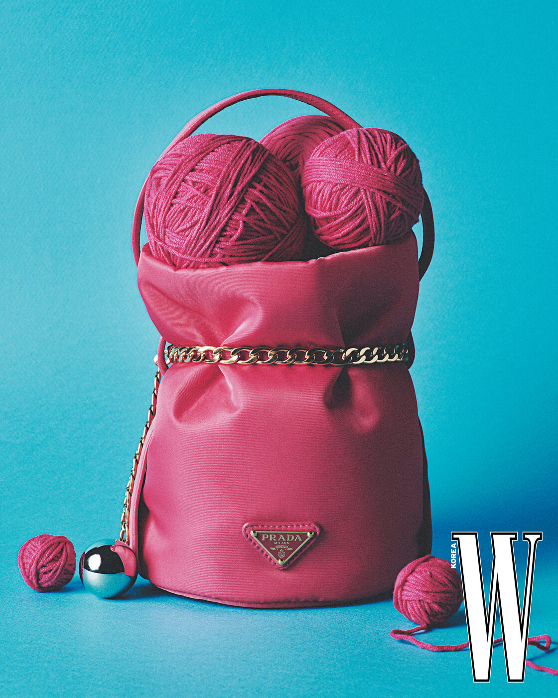 핑크색 버킷백은 프라다 제품.