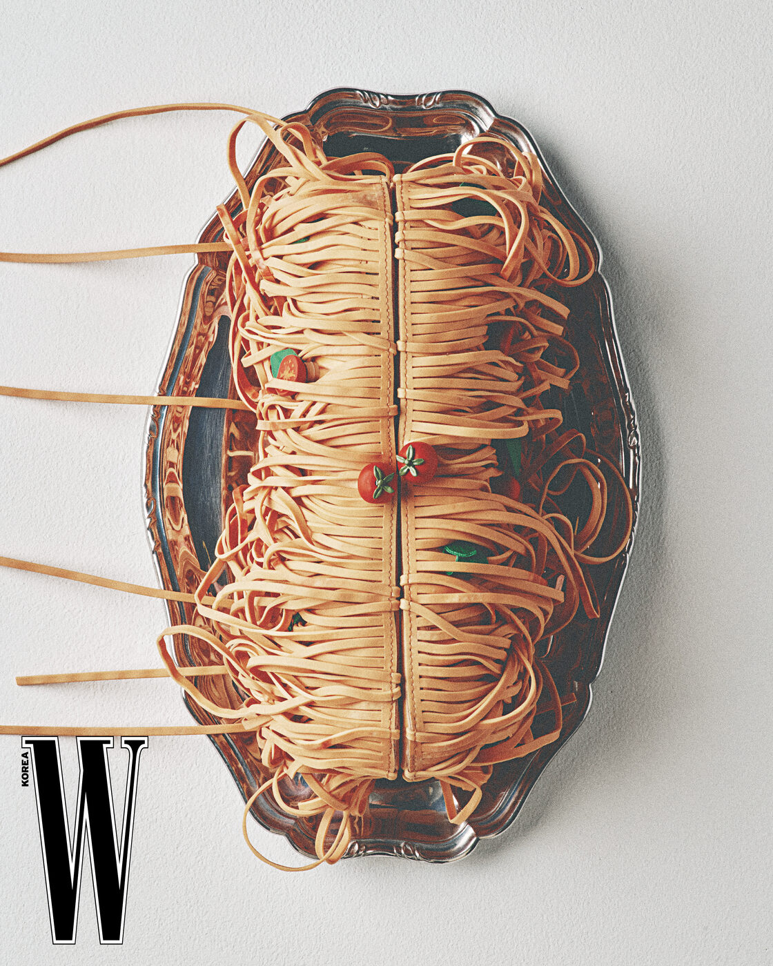 스파게티를 연상시키는 클러치백은 모스키노 제품.