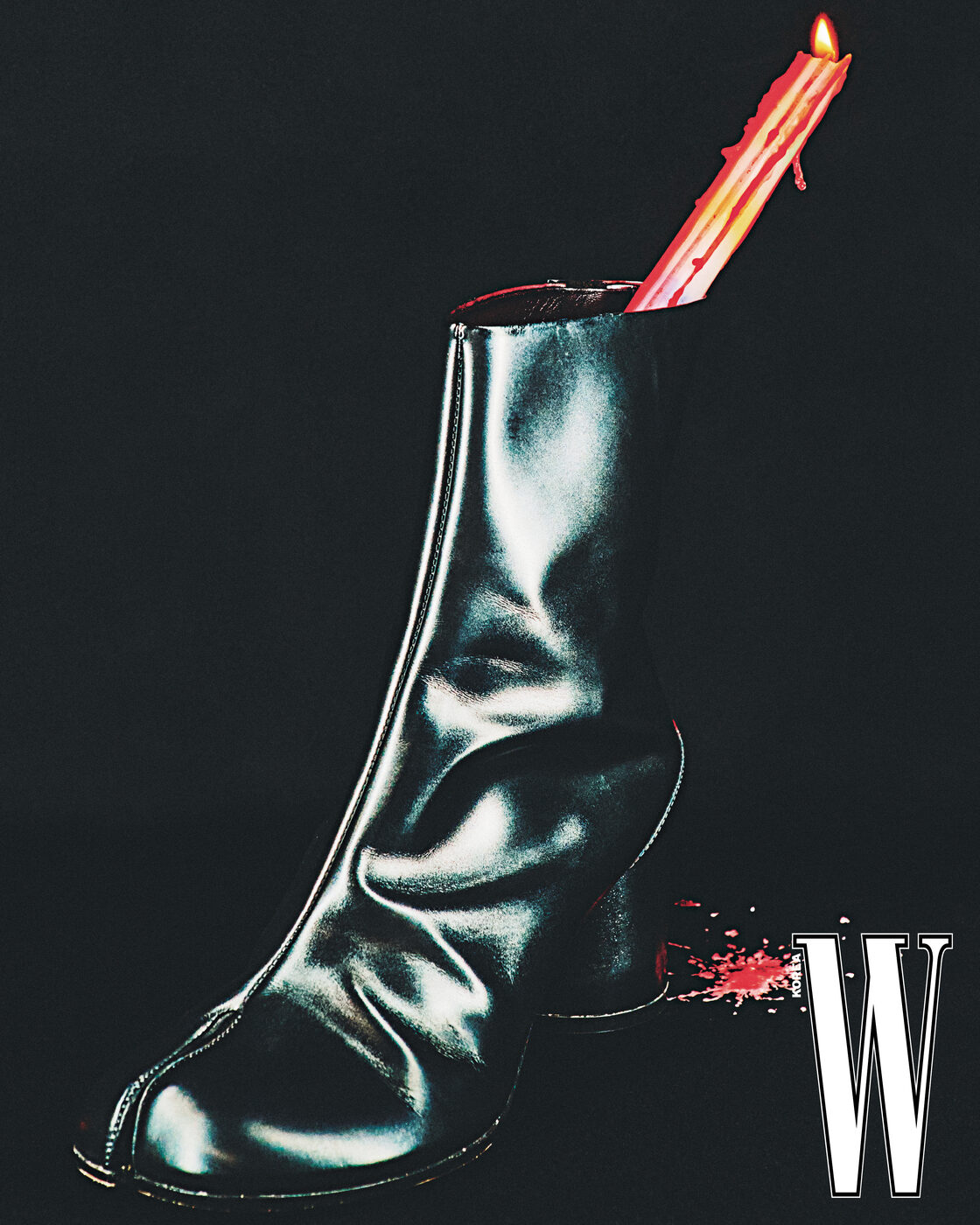 은은한 광택이 도는 가죽 소재 앵클부츠는 메종 마르지엘라 제품.