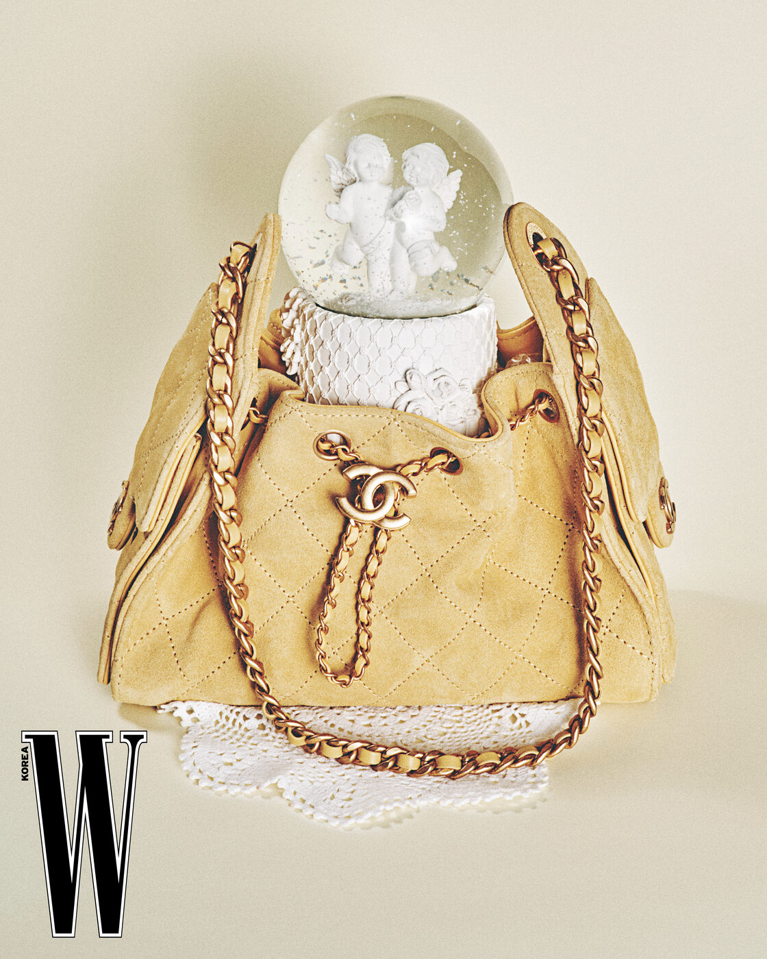 퀼팅 디테일의 미니 핸드백은 샤넬 제품.
