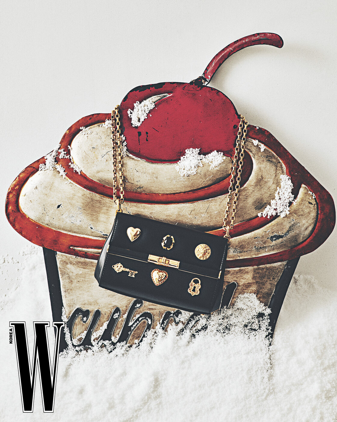 다채로운 참 장식이 달린 미니 백은 돌체앤가바나 제품.