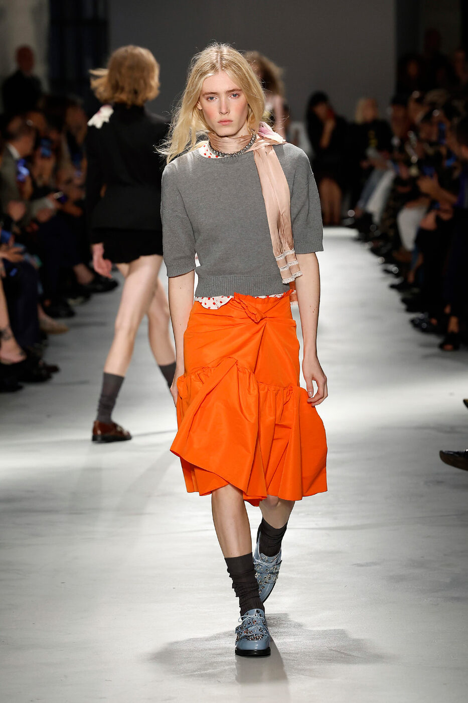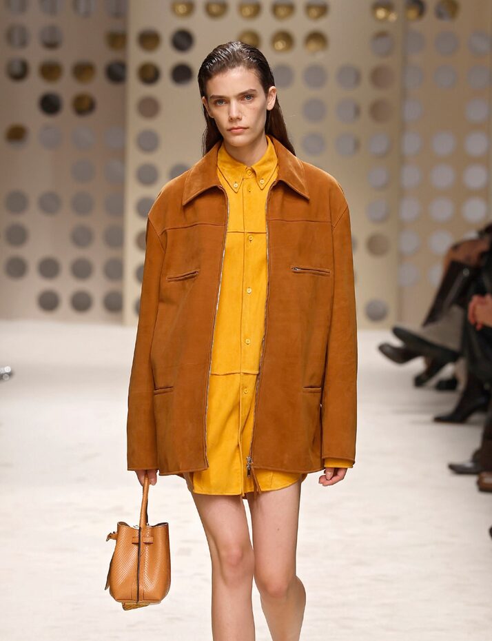 주황, 오렌지 컬러를 잘 입기란 생각보다 어렵지 않아요. 하지만 은근히 고급스러움을 선사하는 이 컬러를 그레이와 블랙, 등 모노 컬러와 매칭하면 의외로 간단하게 시크한 옷차림을 완성할 수 있답니다. 주목할 점은 주황빛 드레스에 브라운 톤의 재킷을 매칭하는 거예요. 토즈와 미우미우 컬렉션에서는 모던하게 도회적인 스타일 혹은 플라워 패턴의 빈티지한 스타일로 오젠지와 브라운의 만남을 풀어냈습니다.