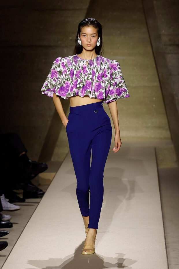 이토록 비비드한 컬러가 플라워 패턴과 만나면 더욱 시선을 끌게 마련입니다. 보라색 꽃무늬가 주는 촌스러움을 그대로 살린 미우미우는 되려 강렬한 레드 크로쉐 니트를 더해 빈티지한 무드를 끌어올렸고, 화려한 플라워 패턴으로 세련된 호보 시크를 선보인 클로에는 로맨틱한 크롭 톱과 슬림한 스키니 팬츠로 진한 보라색의 엘레강스함을 드러냈습니다. 초록색과 매칭한 펜디의 퍼플 재킷 또한 주목해 보세요. 채도가 비슷한 강렬한 컬러들을 함께 매칭하는 것, 다가올 새 시즌 색을 가장 자유롭게 즐길 수 있는 방법일거예요.