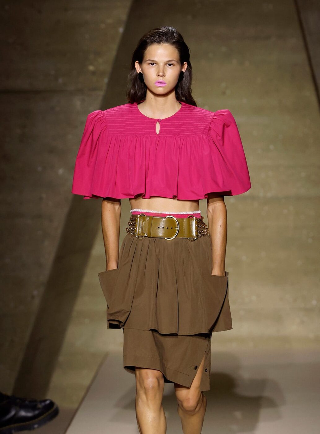부드럽고 로맨틱한 핑크가 아닙니다. 카리스마가 느껴질 충분히 파워풀한 핑크들이 등장했어요. 채도가 높은 분홍색 그 자체가 시선을 사로잡기도 하지만 역시나 함께 매칭한 컬러 브로킹이 핑크의 스타일리시함을 좌우했죠. 펜디는 디자인은 심플하지만 초록과 빨강 등의 강렬한 컬러 조합을, 클로에는 핑크와 브라운으로 다소 색다르지만 감각적인 컬러 궁합을 선보였습니다.