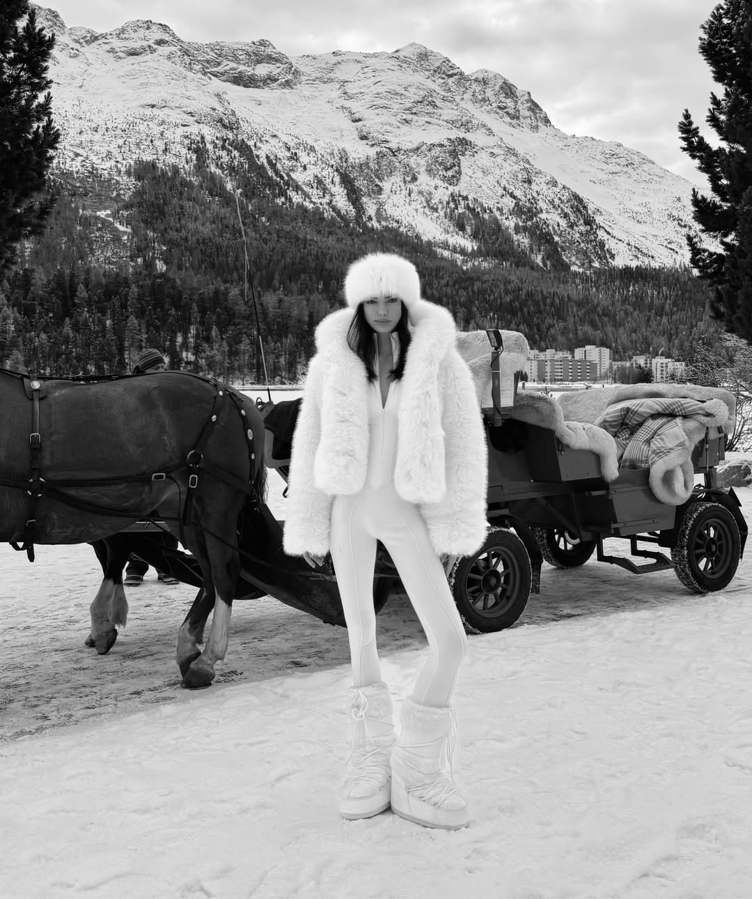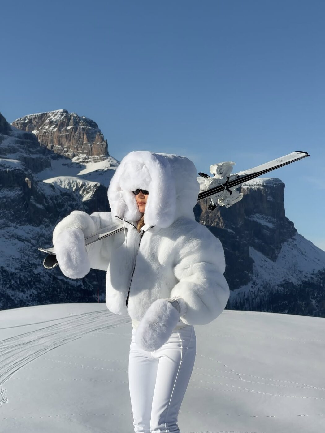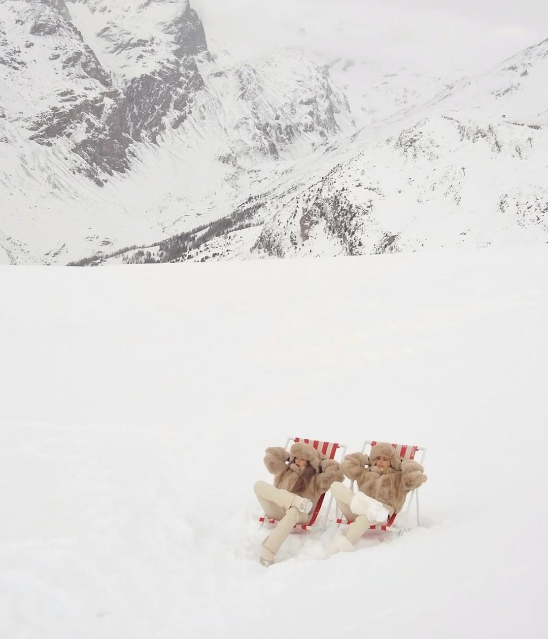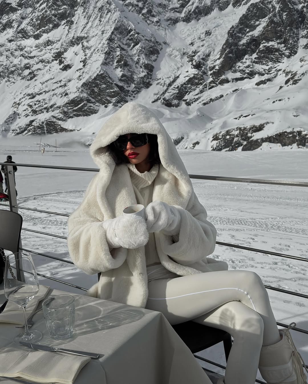 가장 먼저 주목해야 할 건 바로 컬러에요. 하얀 눈으로 뒤덮인 배경과 조화롭거나 강렬한 대비를 이루거나 선택지가 나눠지지만, 결론적으로 이번 시즌의 정답은 솔리드 원 컬러 룩입니다. 상하의 컬러를 다르게 매치하거나 복잡한 패턴이 들어간 룩은 거의 찾아보기 힘들죠. 컬러와 패턴이 화려할수록 배경과 이질적인 인상을 줘, 배경 특유의 내추럴 무드와 조화롭지 않기 때문입니다. 그래서인지 컬러 역시도 눈과 일체감을 보여주는 화이트, 오트밀, 라이트 그레이 등 뉴트럴 계열이 가장 많이 포착됐어요. 킴 카다시안 역시 ‘노스페이스 X 스킴스’ 컬렉션의 화이트 컬러 룩을 선보였죠. 좀 더 강렬한 느낌을 주고싶다면 레도, 옐로와 같이 원색적인 컬러보다는 블랙, 네이비, 버건디와 같이 묵직한 네이처 컬러가 대안이 되어줄 겁니다.