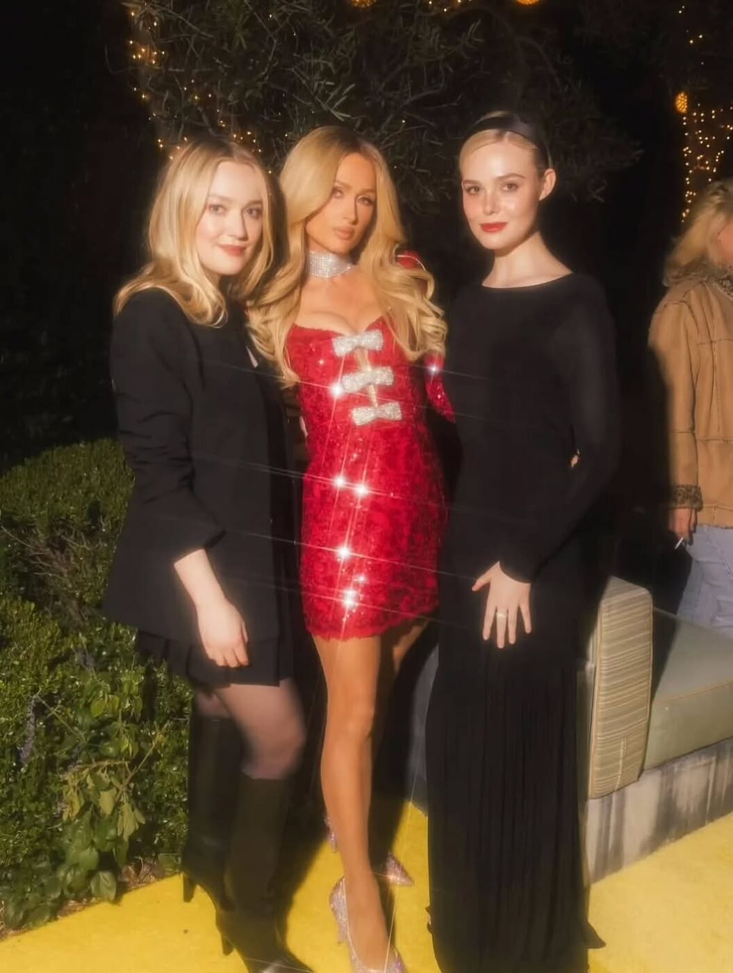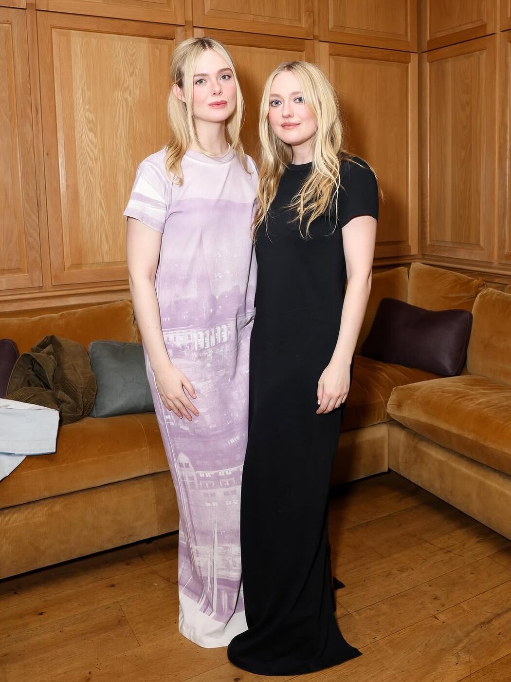 엘르 패닝이 출연했던 영화 ‘Sentimental Value’로 골든글로브에 노미네이트가 되어 축하 파티가 있던 날. 파티 주인공인 엘르는 잔잔한 풍경이 프린팅된 라벤더 색상의 티셔츠 드레스를 입었습니다. 사실 이 드레스에는 엘르에게 깊은 의미가 담겨있는데요. 코치(Coach) 앰버서더인 그녀를 위해 브랜드에서 영화의 배경지였던 오슬로의 풍경을 드레스에 프린팅을 넣어 맞춤 제작해 준 것이었죠. 언니인 다코타 역시 동생과 같은 디자인의 블랙 드레스를 맞춰 입어주었는데요. 주인공인 동생이 더욱 주목받았으면 하는 마음으로 선택한 어두운 색상의 드레스로 전한 조용하고 따뜻한 마음이 느껴집니다.