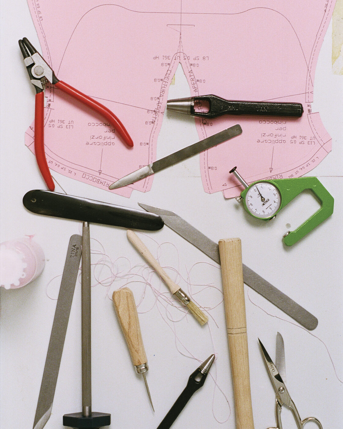디올 보우 백의 제작 과정. 디올 가죽 공방에서는 가죽을 자르고 형태를 잡는 모든 과정 안에 장인의 손길이 담겨있다. 리본은 덧붙인 장식이 아니라 가방의 틀을 이루는 요소이고, 체인 스트랩의 보우 장식은 디올의 섬세함을 여과없이 보여준다.