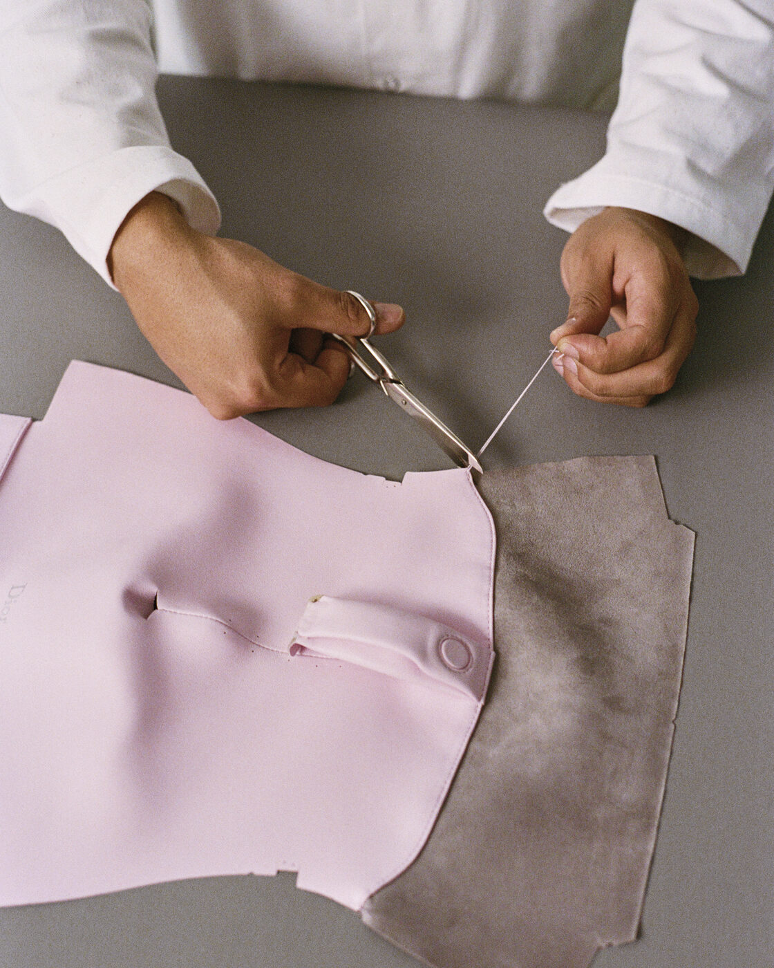 이 가방의 완성도는 제작 과정에서 더욱 분명해진다. 리본은 덧붙인 장식이 아니라 가방의 틀을 이루는 요소로 설계됐다. 디올 가죽 공방에서는 가죽을 자르고 형태를 잡는 모든 과정에 장인의 손길이 담기고, 소재가 달라져도 최종 인상은 흐트러지지 않는다. 가죽은 유연하게 움직이고, 윤곽은 또렷하게 유지된다.