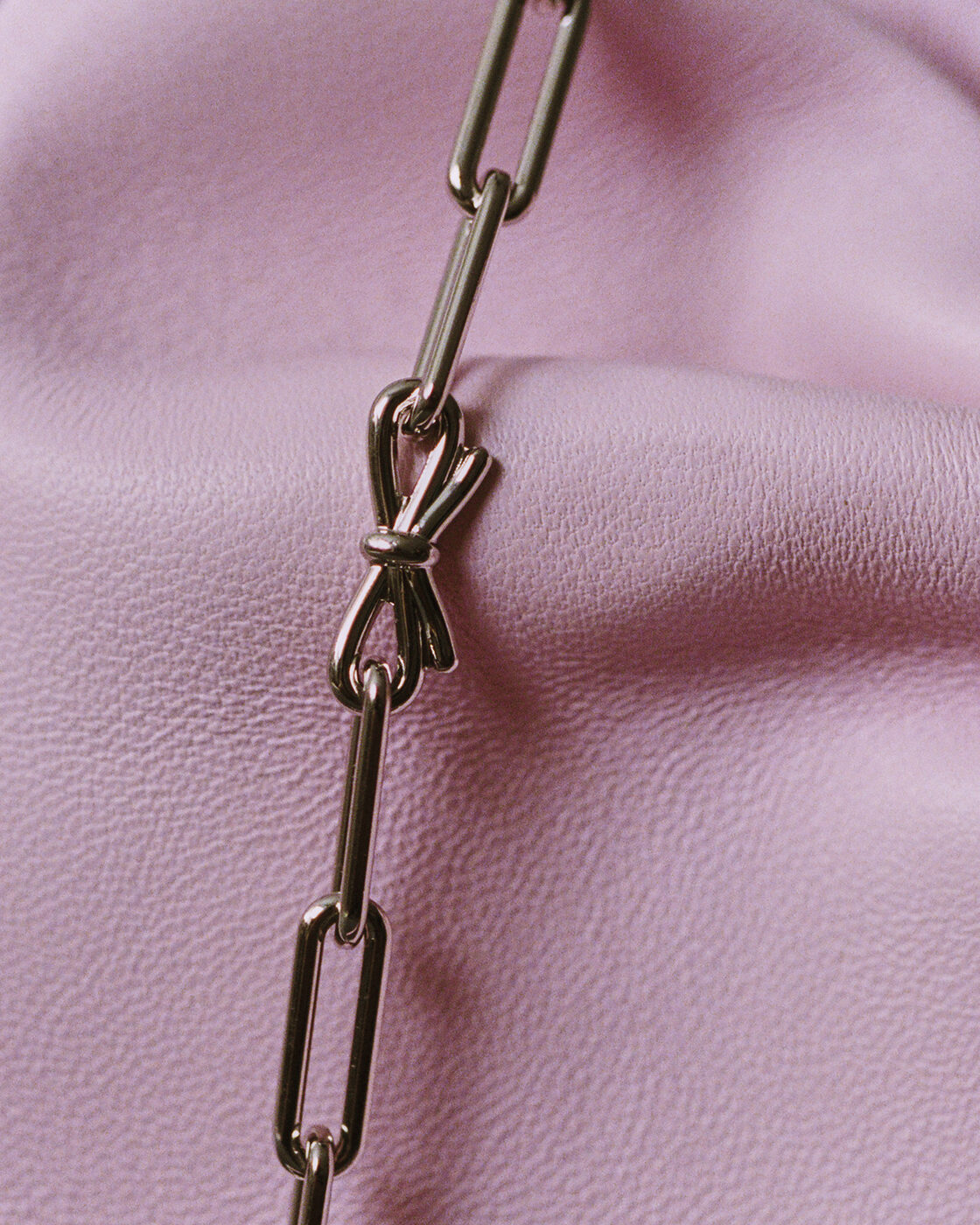 세부 요소도 전체 흐름에 맞춰 정리돼 있다. 잠금장치는 겉으로 드러나지 않게 처리돼 있고, 메탈 링크와 보우 디테일이 이어진 체인 스트랩은 어깨에 메기에도 무리가 없다. 장식을 더했다기보다 쓰임을 먼저 생각한 구성이라는 인상이 강하다.
