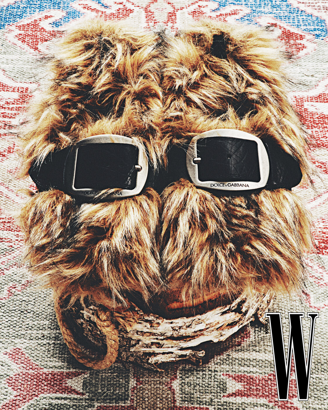 볼드한 벨트 장식이 특징인 퍼 로퍼는 돌체앤가바나 제품.