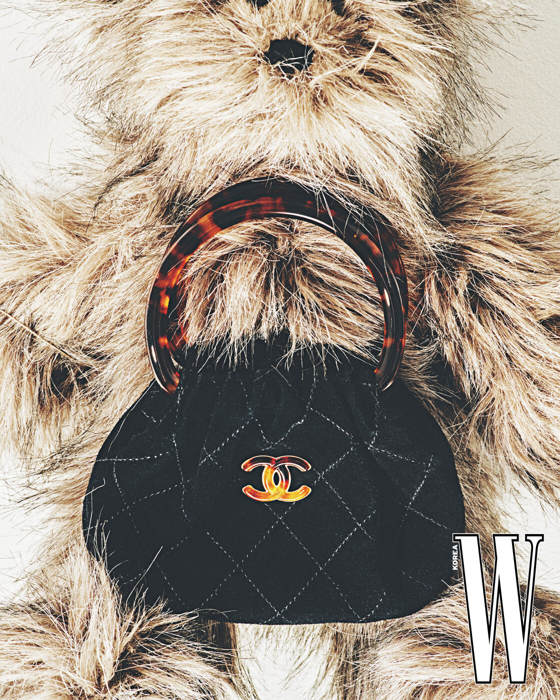 폭신한 퀼팅 디테일의 미니 파우치는 샤넬 제품.