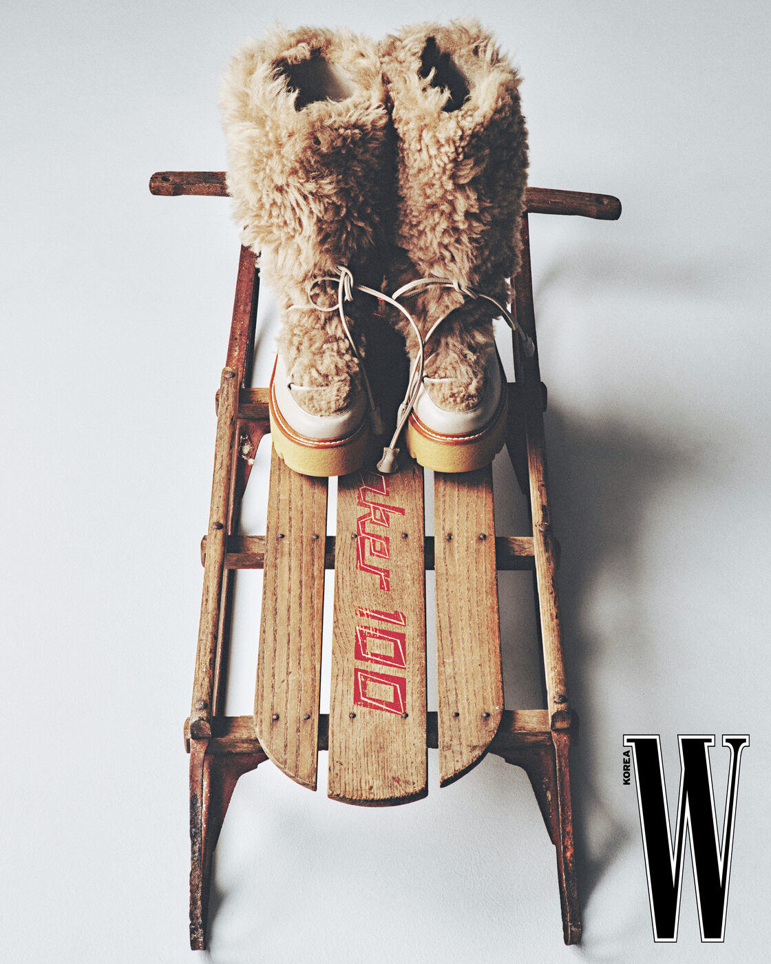 순백의 설원을 연상시키는 사이하이 부츠는 발렌시아가 제품.