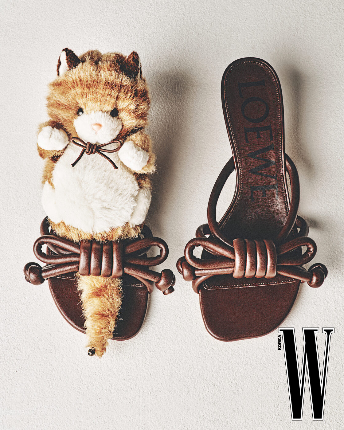 앙증맞은 리본 디테일이 눈에 띄는 샌들 힐은 로에베 제품.