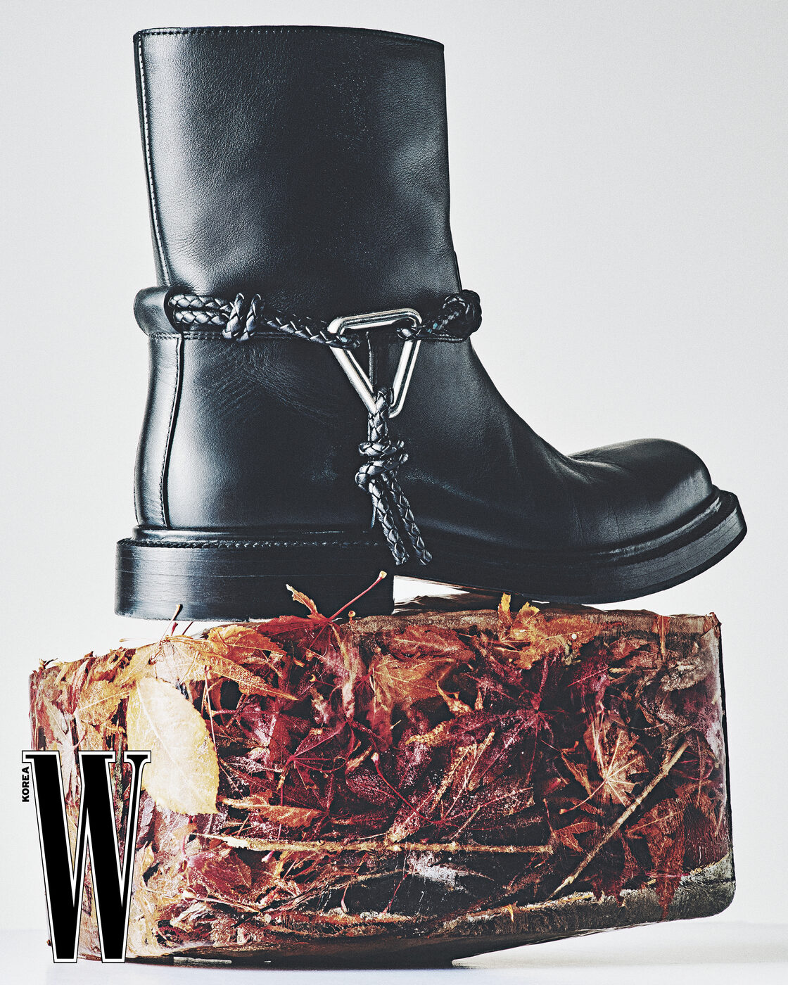 시그너처 메탈 장식으로 포인트를 준 앵클부츠는 보테가 베네타 제품.