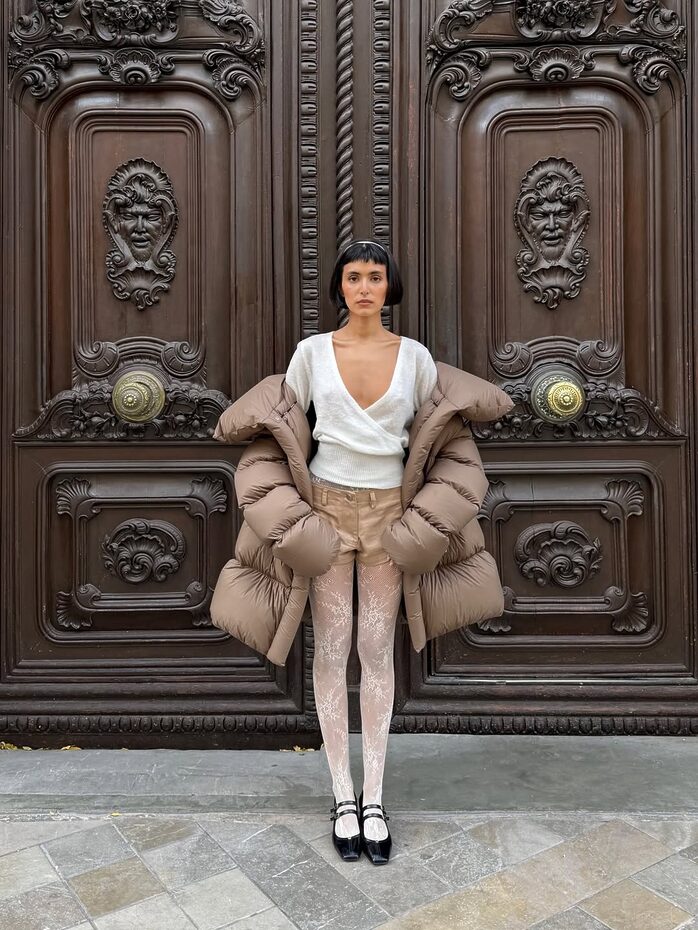 엉덩이를 살짝 덮거나 허벅지를 가릴 정도의 미들 패딩 점퍼는 우아한 스타일을 연출하기에 좋습니다. 특히 벨트 디테일이 가미된 디자인의 미들 패딩 점퍼는 잘록한 허리 라인을 강조해 여성스러운 실루엣을 한층 돋보이게 해주죠. 각선미를 뽐낼 짧은 하의와 스타킹에 볼륨감 있는 형태의 벨티드 미들 패딩 점퍼, 몸을 완전히 감싸안을 만큼 넉넉한 오버사이즈 미들 패딩 점퍼를 걸쳐 가녀린 듯 관능적 매력을 풍기는 반전의 룩을 시도해 보는 것도 추천!