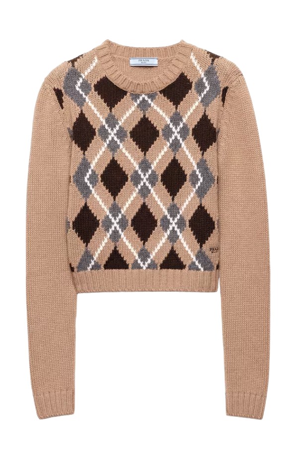 체크 패턴 니트 톱