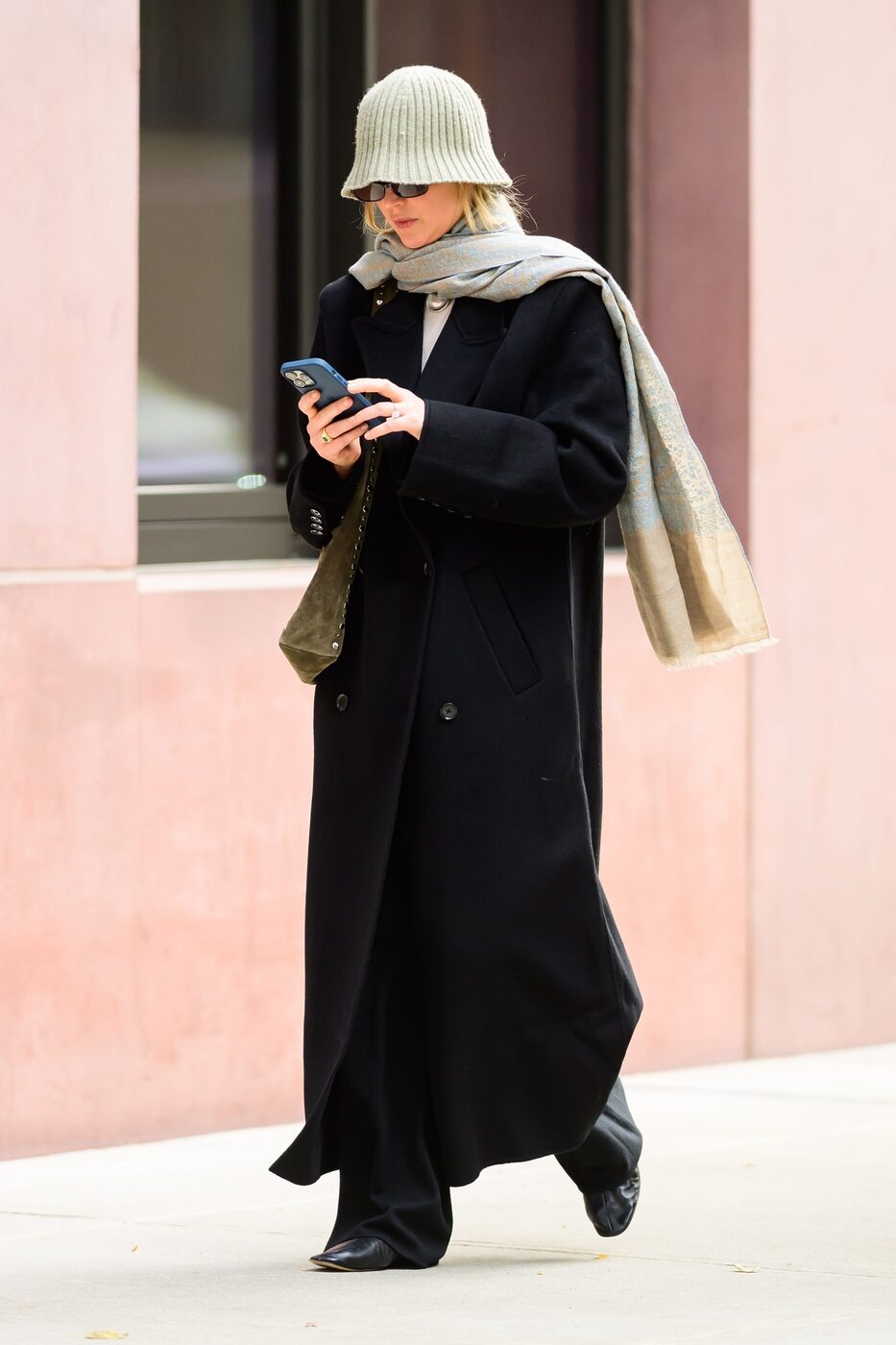 바로 날씨가 추워지면 어김없이 목에 힘을 주는 스카프를 둘러주곤 합니다. 그 소재와 패턴, 컬러 그리고 매는 방식도 매번 조금씩 달라요. 셋업 룩보다는 편하고 루스한 핏을 즐겨 입는 그녀는 커다란 블랙 롱 코트 룩에 모자와 색을 맞춘 뉴트럴 컬러의 스카프를 뒤로 휙, 휙 넘겨 자연스러운 에포리스 룩을 완성해 주었어요. 세련되고 시크한 자태였죠.