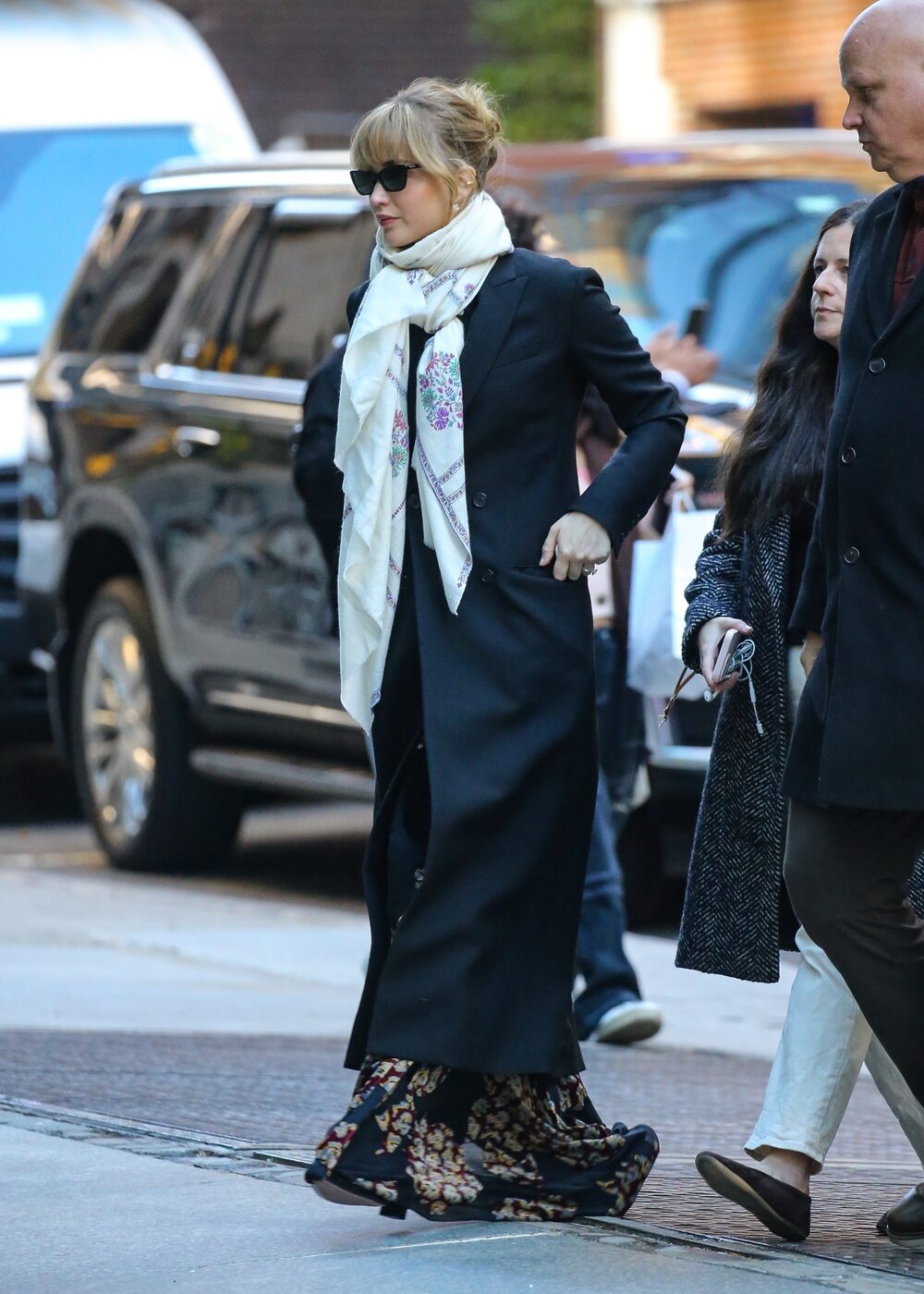 제니퍼 로렌스는 내추럴한 스트리트 룩과 더불어 우아한 레드 카펫 룩의 장인이기도 합니다. 롱 드레스를 안에 입고 슬림한 블랙 코트를 위에 걸친 그녀는 역시나 스카프를 빼먹지 않았어요. 여성스러운 플라워 패턴이 엿보이는 로맨틱한 아이템은 여느 소셜 미디어에 소개된 ‘스카프 매는 법’이 아닌 투박하게 질끈 묶어준 모습이었지만, 이 또한 엘레강스하고 고급스럽게 소화해 보였어요.